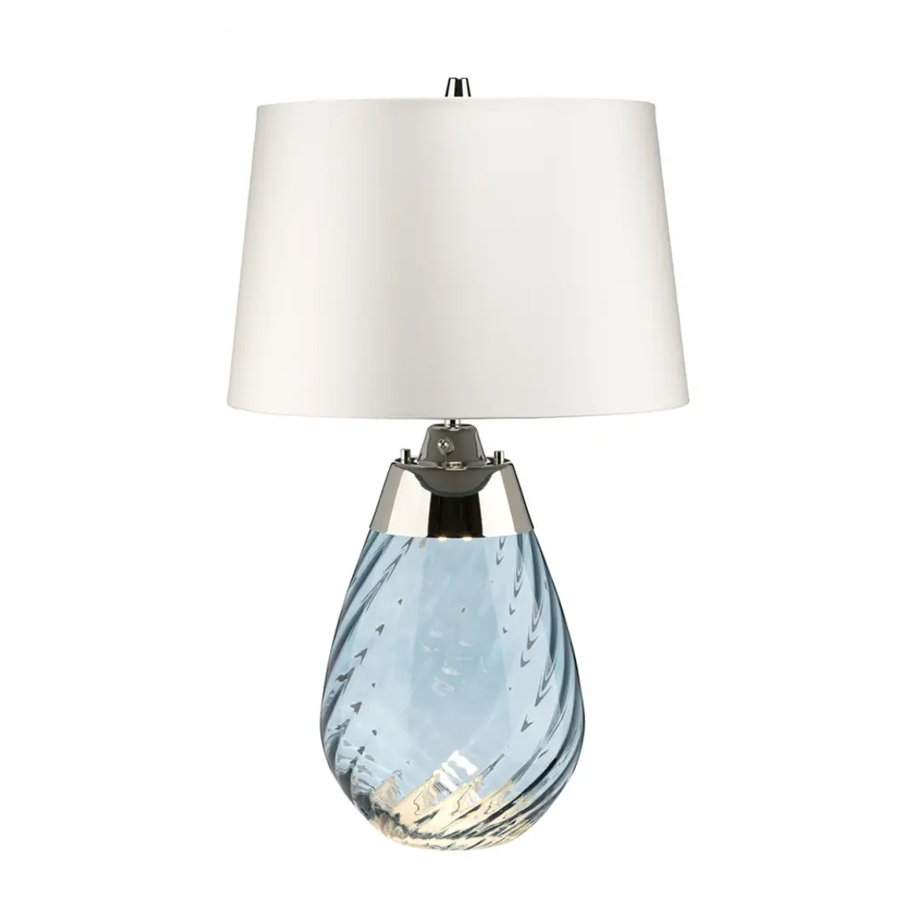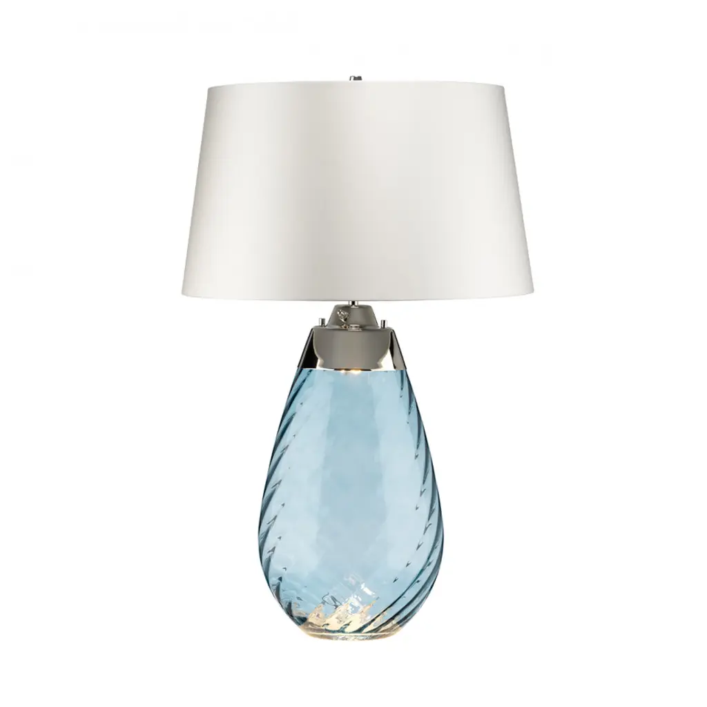 Large Lena Table Lamp In Blue With Off White Satin Shade
