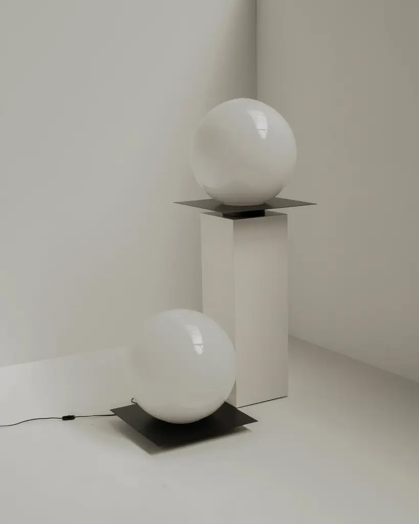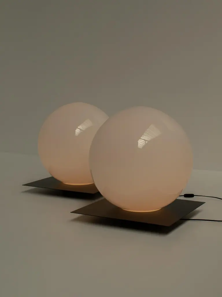 These "Micol" lamps by Sergio Mazza & Giuliana Gramigna for Quattrifolio are timeless. Because of the size, they can be used as floor lamps and/or table lamps. It is incredible that the glass tops have been hand-blown. Both are in excellent condition.Designed and manufactured in Italy, circa 1970s. Opaline glass diffusers, enameled metal.