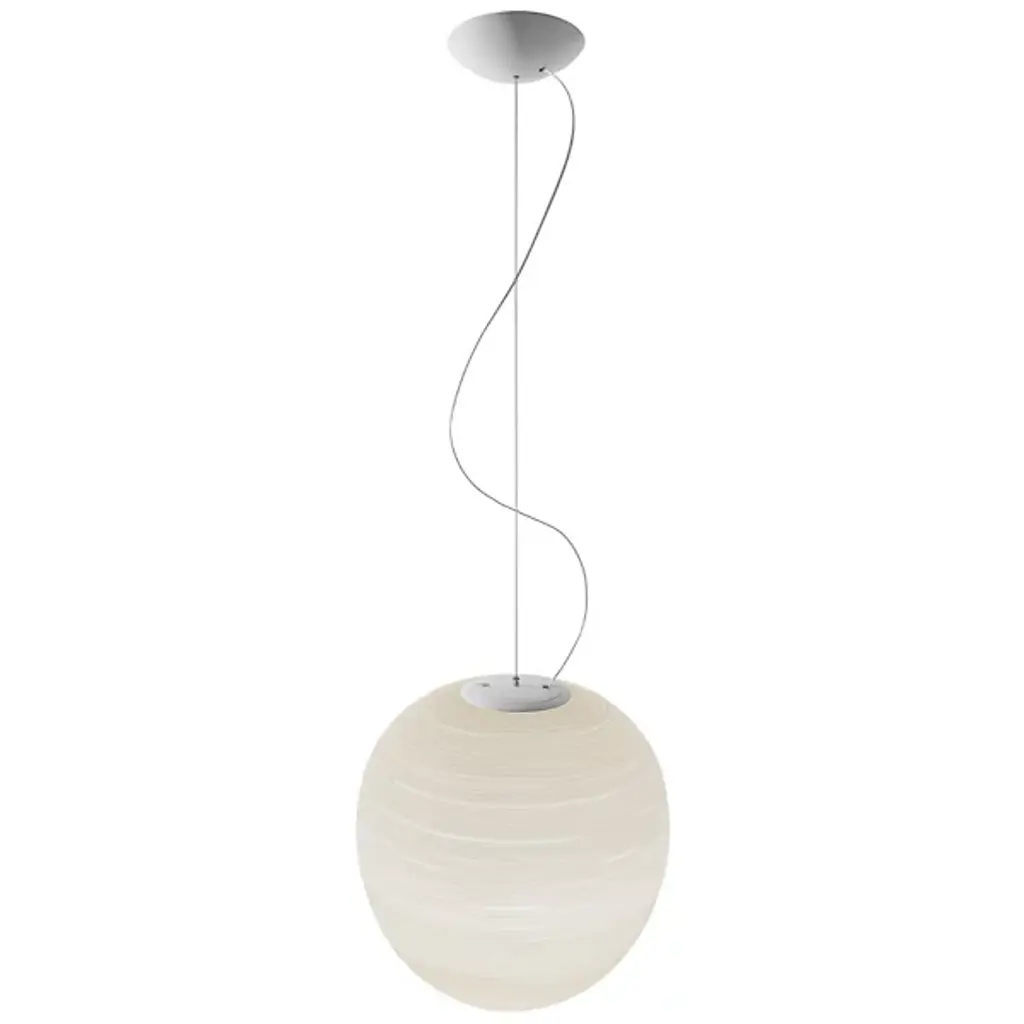 Large ‘Rituals XL’ blown opaline glass suspension lamp in white for Foscarini.Designed by Ludovica + Roberto Palomba and produced by Foscarini, the Italian lighting firm founded in Venice on the legendary island of Murano, where generations of master glass blowers have skillfully used their unmatched imagination and skill to create the most innovative works of light into the modern era. The ‘Rituals XL’ is fabricated using many of the same artisanal glass blowing techniques perfected over centuries, with thoughtful attention to detail, use of high quality materials and incomparable rigor and passion. Incised with surface engravings that recall the bamboo ribbed washi paper of a Japanese light sculpture or traditional Chinese lantern, the ‘Rituals XL’ is executed in blown opaline glass with its unique striped effect achieved through a meticulous step by step process.Price per item. In stock and available in unlimited quantities. Also available as a ceiling lamp or table lamp in a variety of sizes & shapes. This listing is for large Rituals XL pendant in white.In stock lead time 2 weeks. Out of stock can add 12 weeks or more. Please note that inventory availability can change without notice. Please contact us for current lead times prior to placing time sensitive orders.Accommodates a single standard medium base e26 bulb, max 100 watt incandescent (bulb not included). This lamp is ETL listed. Not UL listed, but recommended UL listing possible from an authorized 3rd party vendor for an additional fee. All sales final.