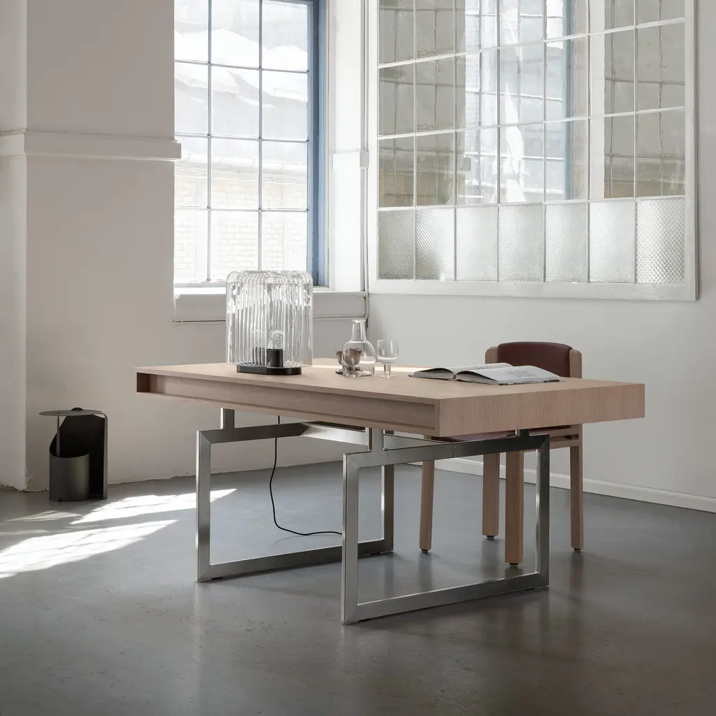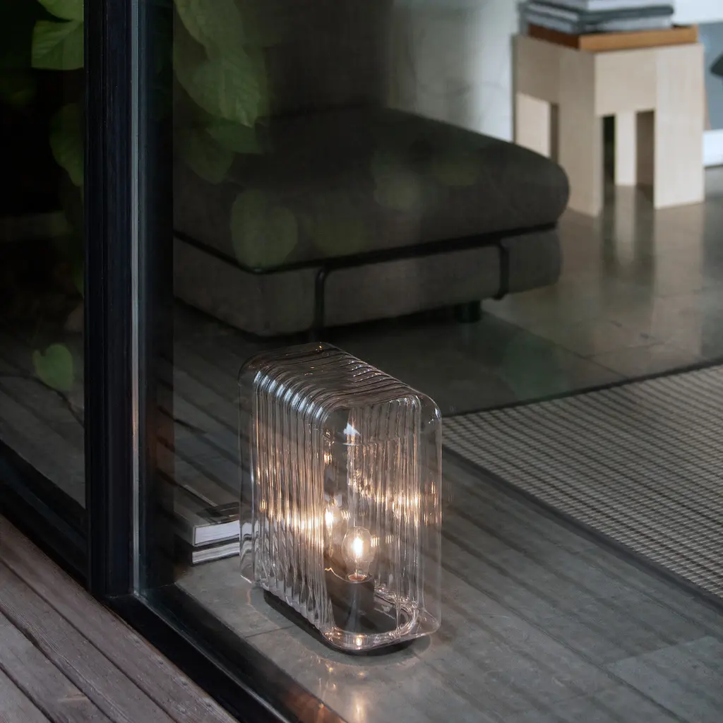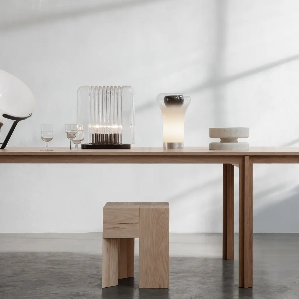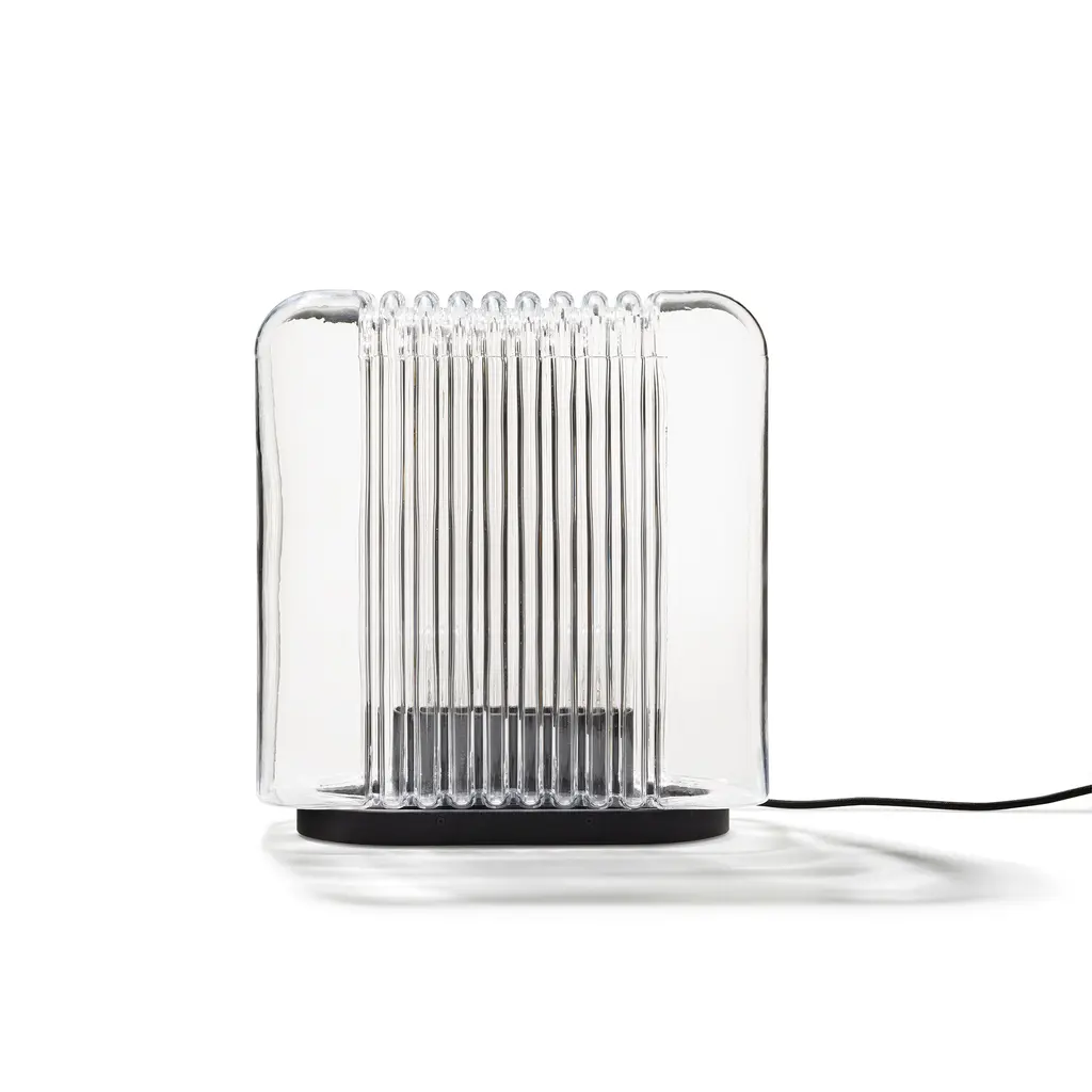 Let iconic Italian design brighten your home. Created in 1978 by renowned architect and designer Angelo Mangiarotti, the Lari Table Lamp brings timeless style and quality craftsmanship into your living spaces. As striking and distinctive as ever, this lamp features a rectangular shape with an eye-catching rippled pattern that softens and diffuses the light. Crafted in Italy, each Lari table lamp is made from mouth-blown glass with a metal base that boasts a durable powder-coated finish. The black fabric cord matches the color of the base and features an integrated dimmer that allows you to easily adjust the intensity of the light. Perfect to add a sculptural accent to any décor, the Karakter Lari Table Lamp creates a focal point anywhere, whether it’s in use or turned off.