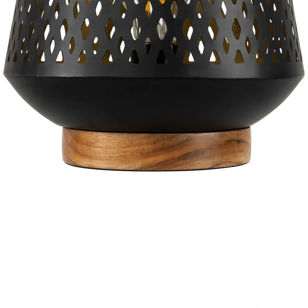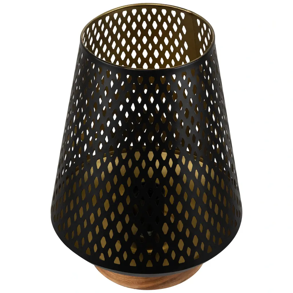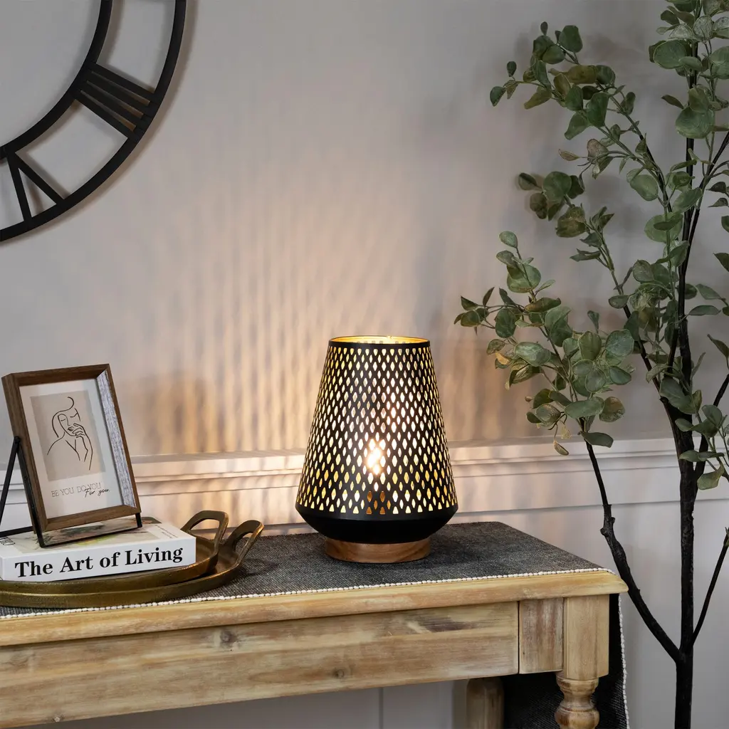 Laser-Cut Diamond Pattern Iron Table Lamp With Wood Base - 11" - Black And Gold - Black
