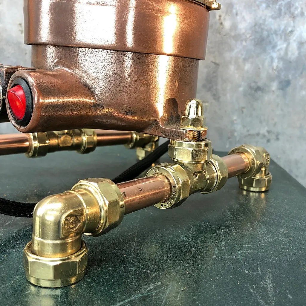 Late Century Copper, Brass And Glass Edison Steampunk Industrial Table Lamp