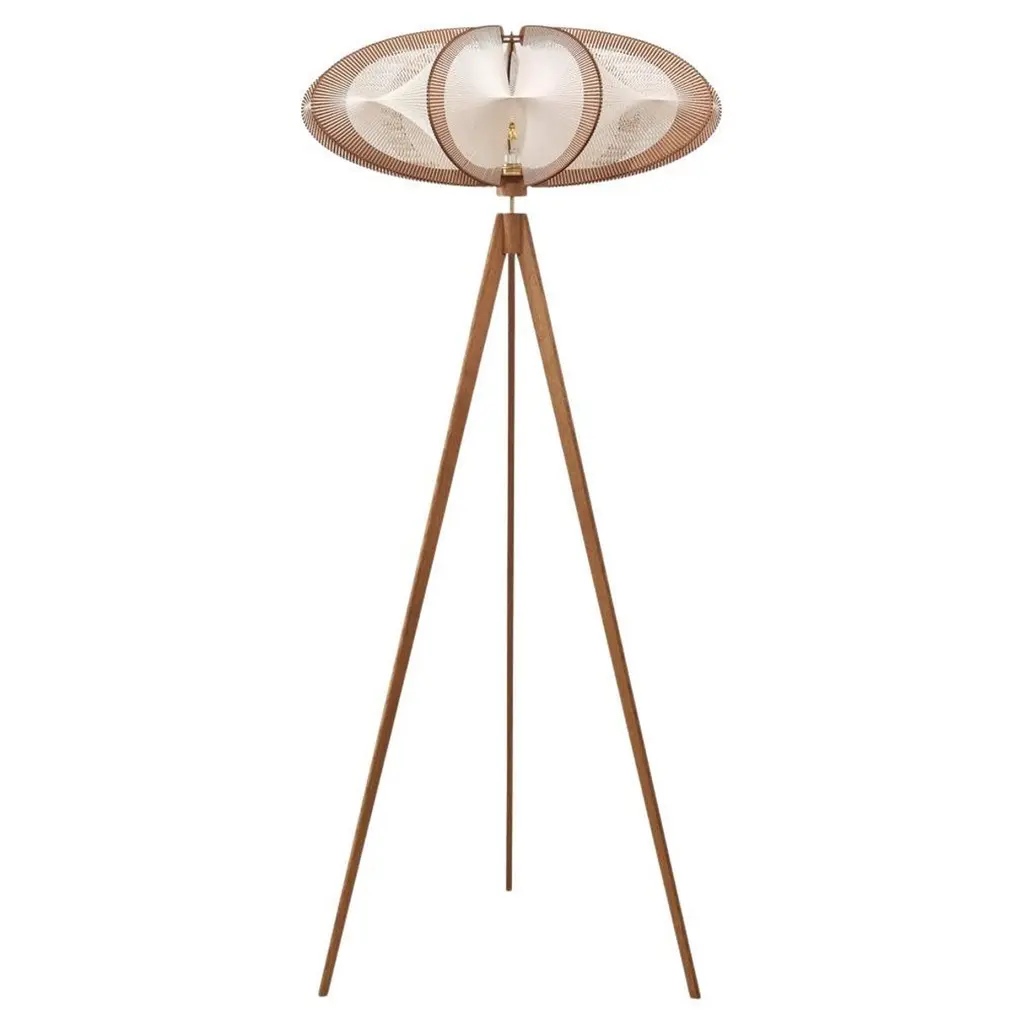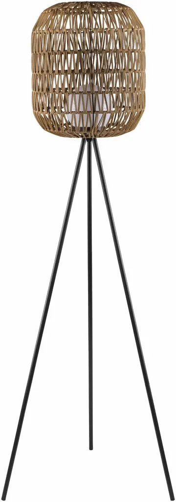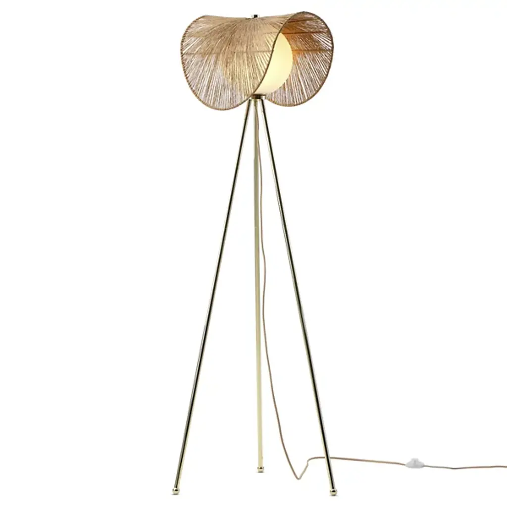 The Latham Table Lamp from Alder & Ore is an innovative fixture that exemplifies Bohemian style. It features a tripod-style framework of aluminum in a lovely brass finish. Each of its legs are streamlined with spherical contours at the base to keep the lamp properly balanced. This fixture is crowned by a shade of intricate rattan and illuminated by an LED that can be adjusted using a convenient hi-lo dimmer.