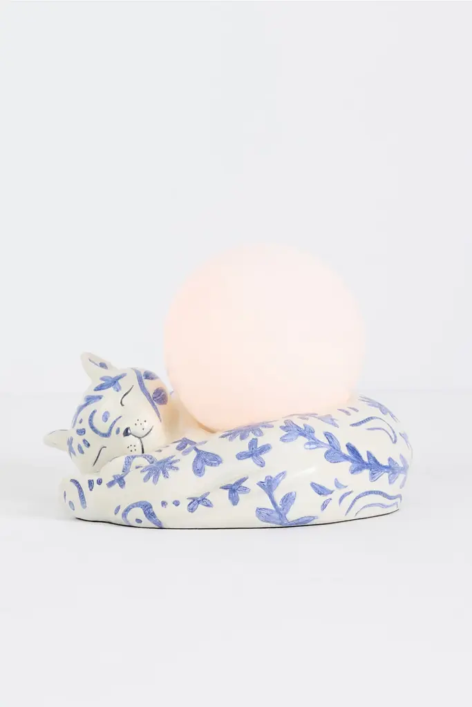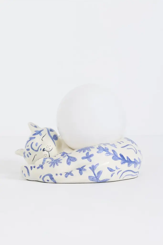 With a ceramic base and glass milk globe, this feline task lamp lends modern appeal - and heaps of charm - to any living room or workspace. *This item is UL listed, meaning it has been tested and approved to meet the government-regulated safety standards for the USA. Use with electrical outlets 110-120v or lower, as anything higher can cause fire or injury. If you're purchasing this item for use outside of the United States, employ the adapter and voltage converter suited for your country.*