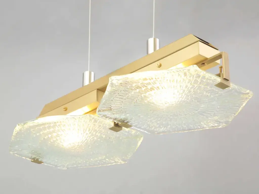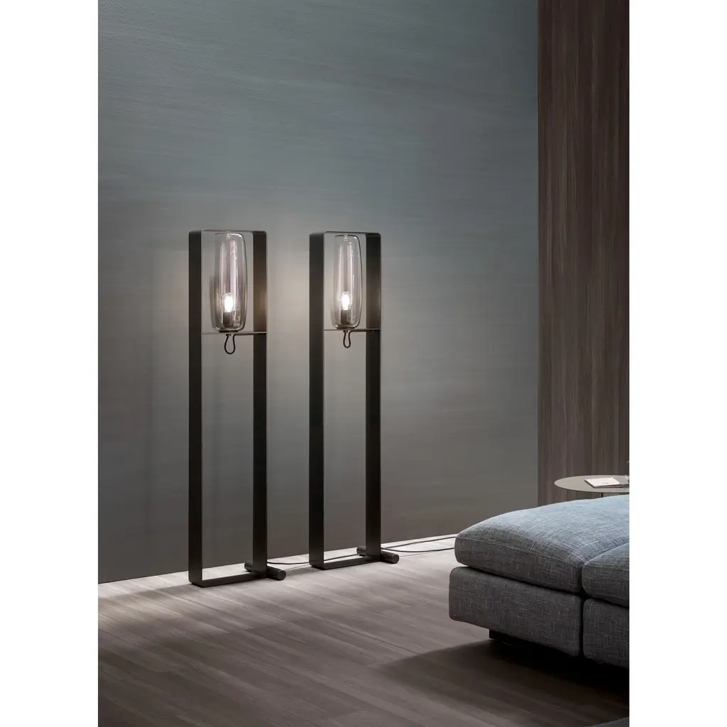 A distinctive design from the Latifoglia Collection of lighting fixtures, this table lamp is composed of two leaf-like shades handmade of blown glass, supported with a clean and slender metal stem each, rising from a metal base. This piece includes a black electric cable with an on/off switch, and a class I driver plug (220-240 V - 50/60 Hz IP20 5W - 24V). Please contact the Concierge for further details.