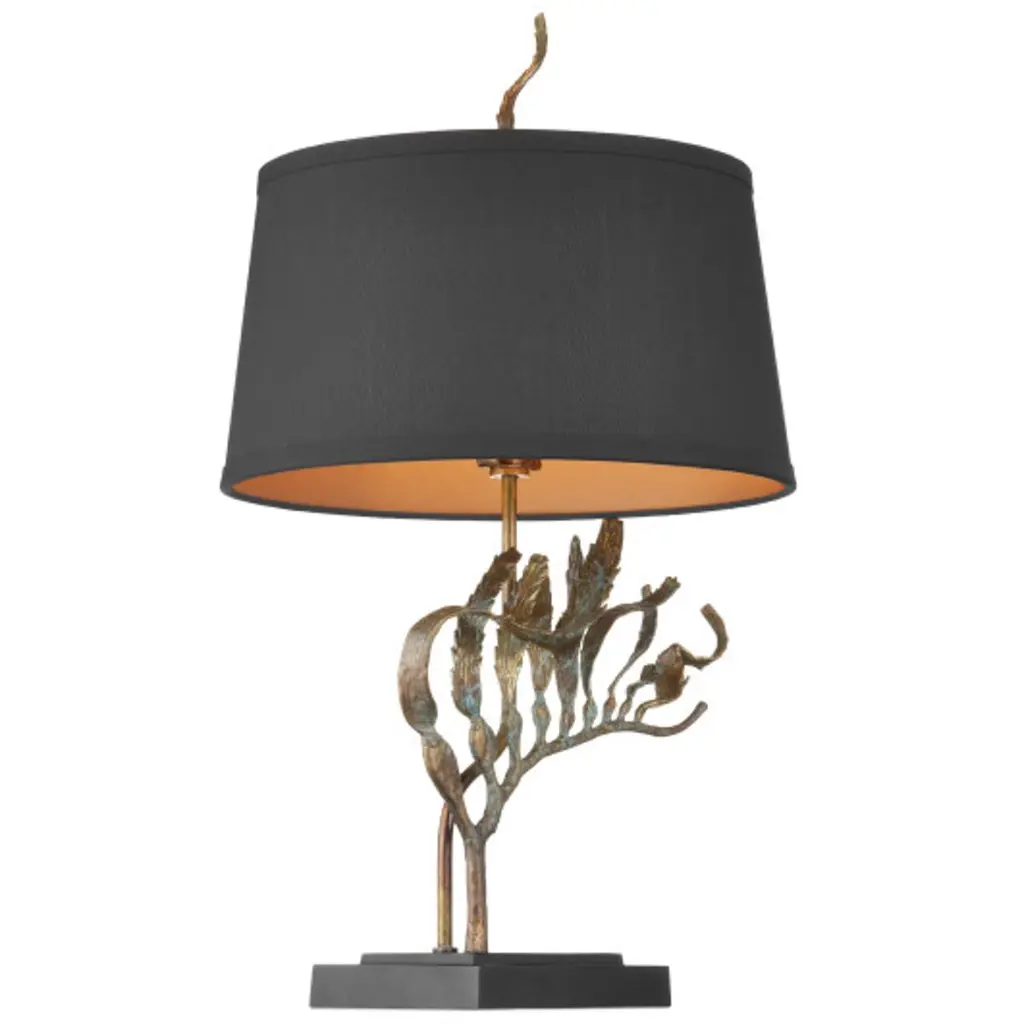 Latissima Brass Table Lamp, Verdigris/black