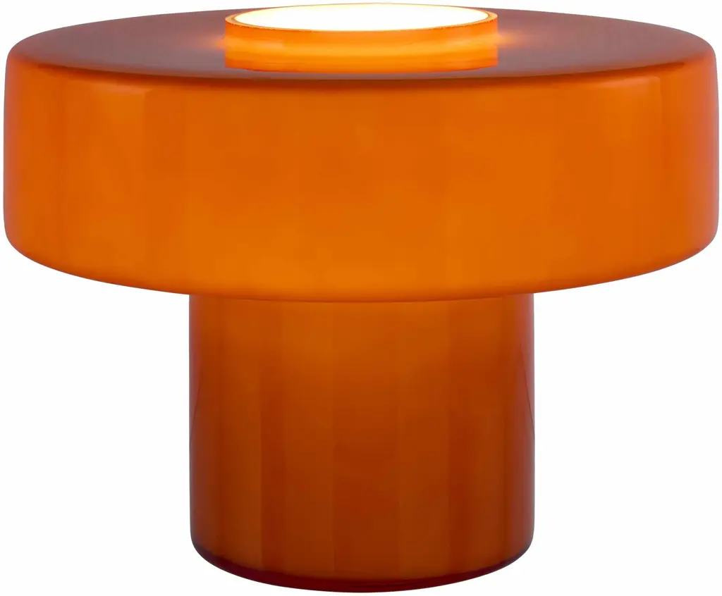 Collection: Lauenhagen Colors: Dark Red, White, Translucent Material: Body: Glass / Shade (Outside): Glass / Shade (Inside): Glass Styles: Contemporary Made In: China Lighting Type: Accent Table Lighting Shade Material: Glass Shade Color: White, Orange Cord Length: 6' Switch Type: Rocker Number of Bulbs: 1 Socket Type: E-26 Bulb Wattage: 25W