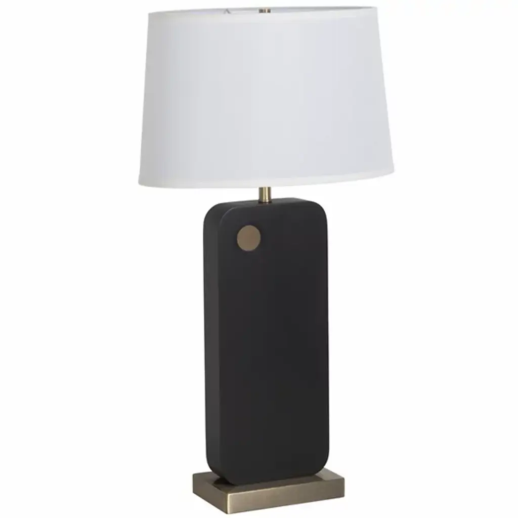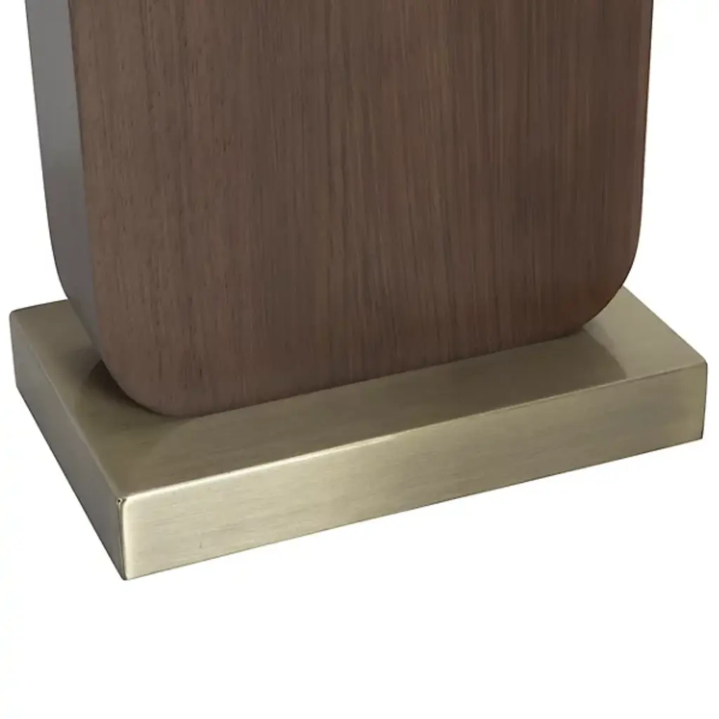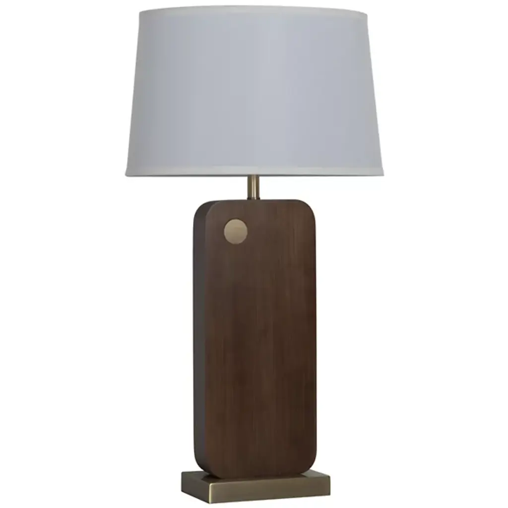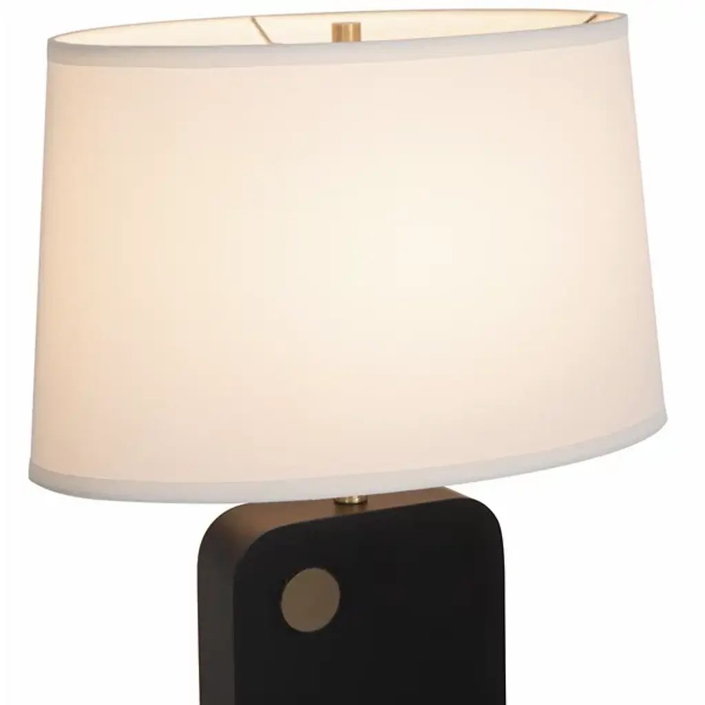 The Laurel Table Lamp from Nova of California introduces an innovative touch-sensitive control system integrated into its circular brass detail. The lamp's wooden body features architectural angles that create intriguing shadow patterns, while the rectangular linen shade provides balanced illumination. Smart technology enables voice control through various home automation platforms, and the lamp's proportions make it perfect for bedside tables and living spaces.