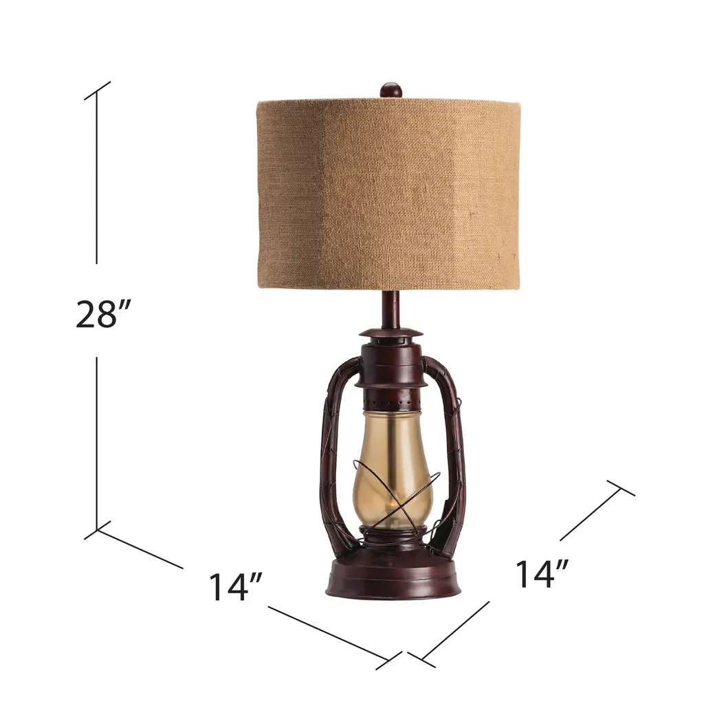 Bring a touch of classic cabin charm to any space with this lovely table lamp, featuring a striking lantern-inspired design in antiqued red tones. For a touch of added ambience in the living room, set this lamp on a console or accent table for rustic charm.