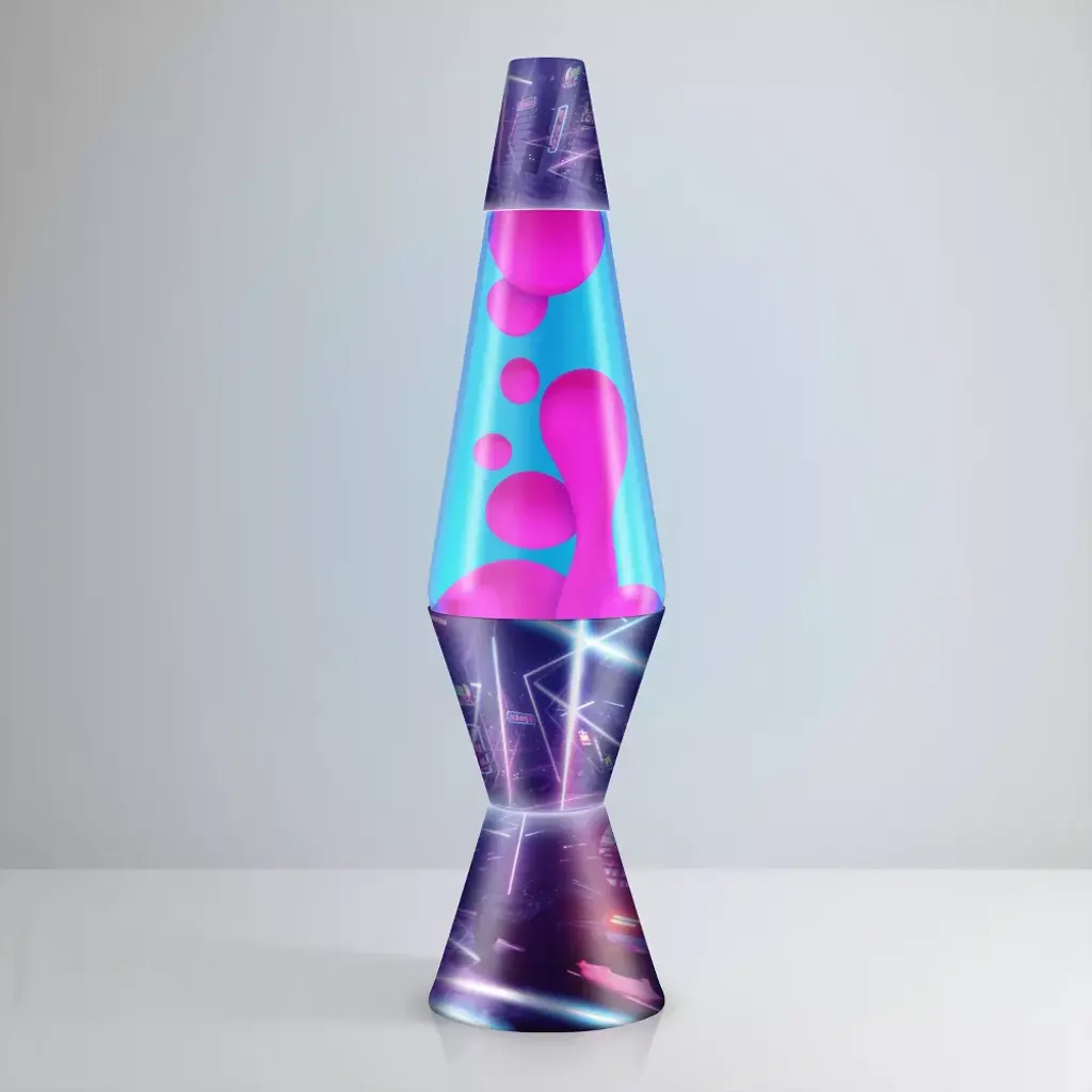 Let this LAVA® Lamp give you that electric feel! Capture the essence of bright lights and late nights with the luminous printed base and cap. The bright pink wax flows through the blue-hued glass globe, making for a soothing sensory experience. For over 50 years LAVA has been a part of the consumer consciousness, consistently enticing new generations to marvel at its glob flowing wonder. This timeless icon is an embellishment to your living space and an awakening to your head space, constantly evolving in ways to illuminate your mood.