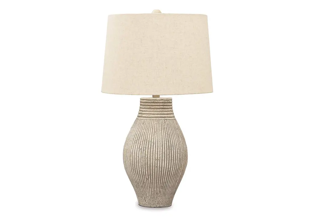 With its textural elements and neutral hues, the Layal table lamp is a natural fit for so many spaces. Paper composite base with organic texture feels wonderfully at home. Weight 15.000 lbs. (6.75kgs.)
