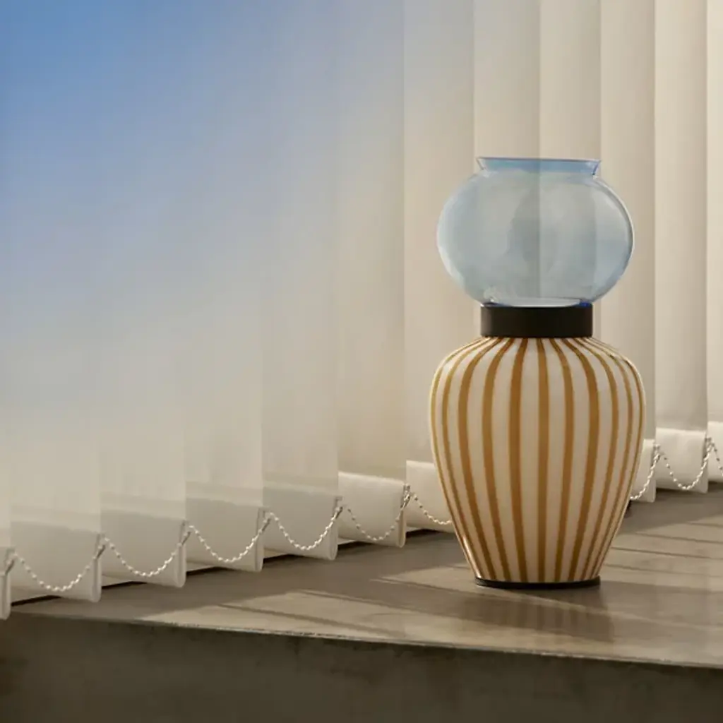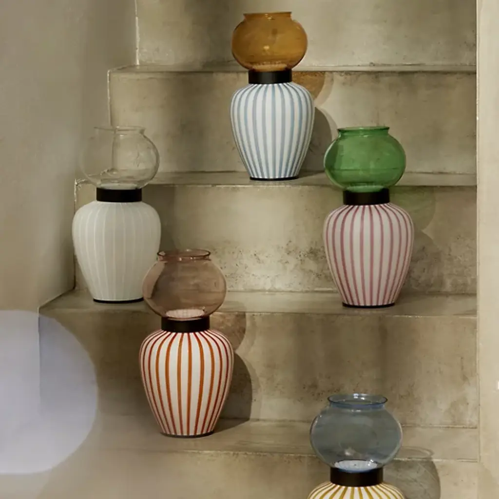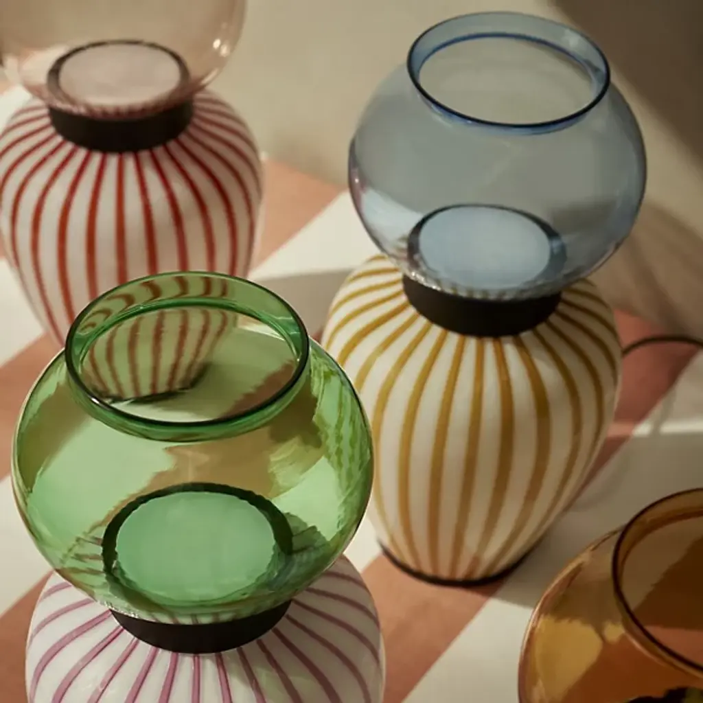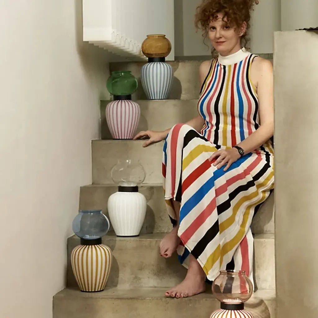 Inspired by traditional nightstand oil lamps, the Layla Table Lamp from MM Lampadari explores the interaction between functional form and decoration as a color-rich luminaire. Artist and designer Serena Confalonieri's work blends graphics, colors, and geometry with a playful twist. This piece's blown glass pairing of shades sports familiar curves that surround the lamping for minimal glare. The opaque bottom shade guides the eye with its elegant, curvaceous stripes. A transparent shade above brings balance to its shine and single color. When lit, new hues are created as warm light filters through the evocative glass forms.