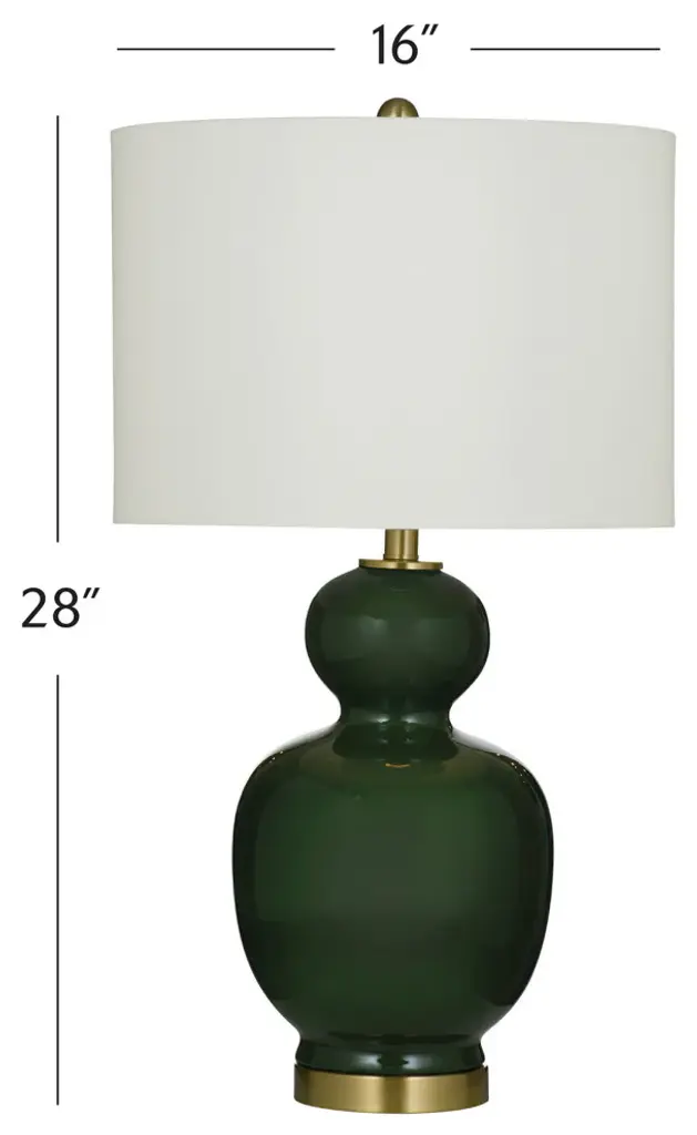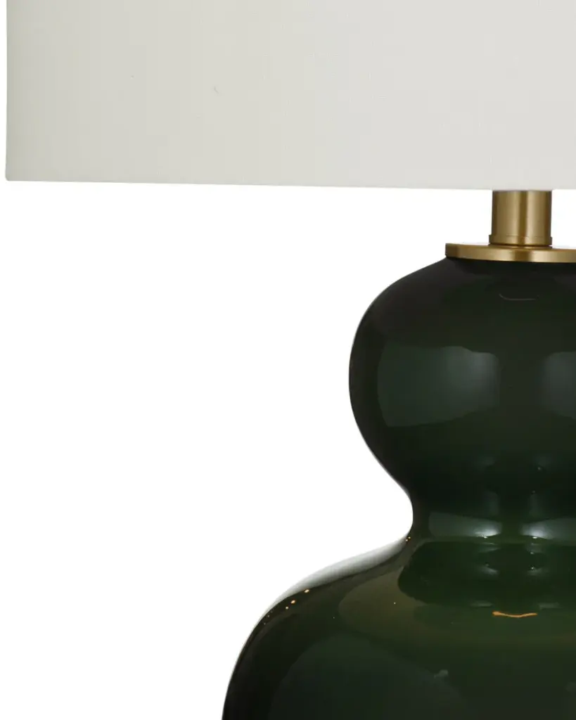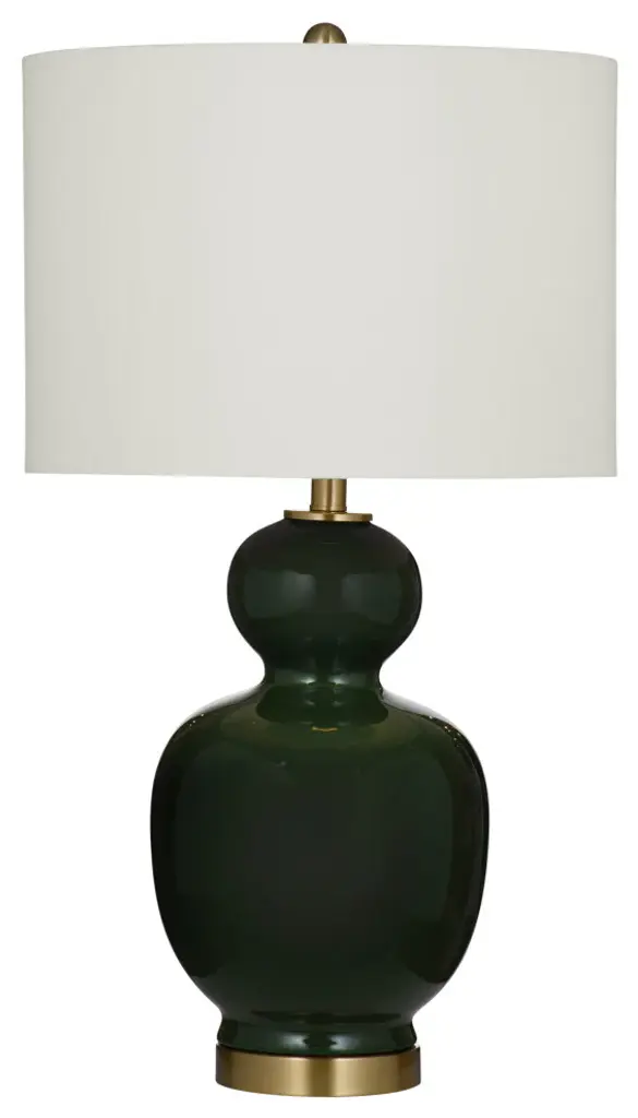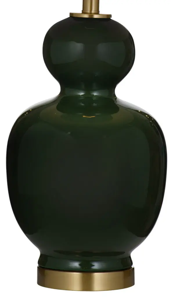 The Layla Table Lamp combines modern and traditional styles with its ceramic base, finished in a rich green glossy tone that adds depth and sophistication. The gold accents complement the vibrant color, offering a touch of luxury and elegance. This lamps timeless design blends seamlessly with a variety of interiors, making it a versatile and stylish addition to any room. The Layla Table Lamp provides both beauty and functionality, creating a refined atmosphere in your home.Features:Traditional design with modern aestheticsRich green ceramic base with brass accentsBulb Type A required, not includedEasy assembly - just attach harp, finial and shadeRequires 1 x 100W Watt Replaceable LED (Not Included)For over a century, Bassett Mirror has been synonymous with style and quality, transforming homes with its sophisticated and timeless designs. With a wide-ranging collection of furniture, lighting, mirrors, and art, Bassett Mirror seamlessly blends modern style with classic appeal. From rustic modern to luxe glam, each piece is thoughtfully crafted to inspire and elevate any space. Committed to exceptional value and customer care, Bassett Mirror makes it easy for homeowners to create beautiful, personalized interiors with confidence.