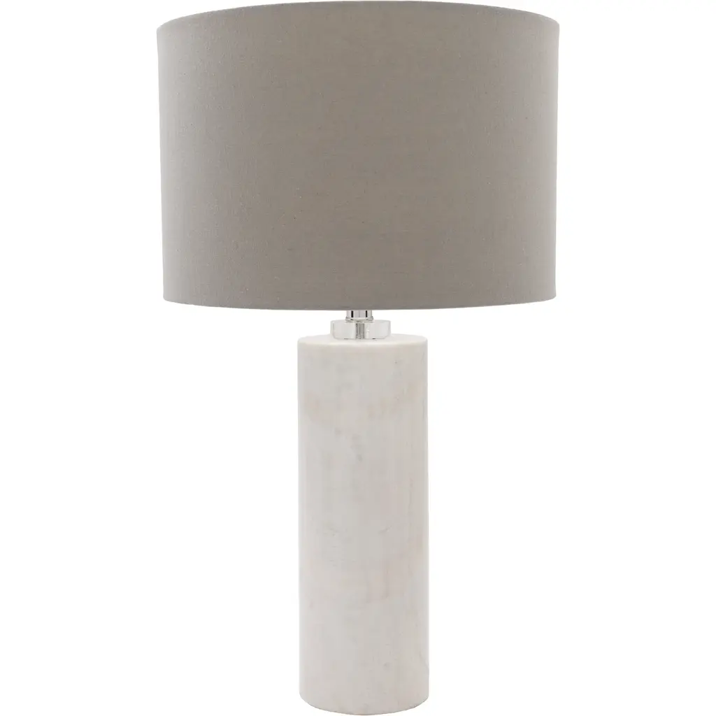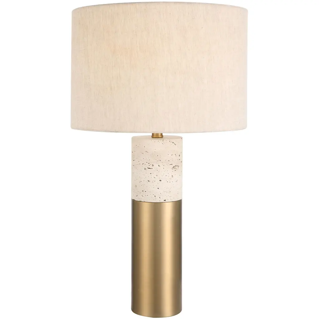 The Lazaro Table Lamp is a stunning piece that exudes elegance and sophistication. Its solid concrete column base is meticulously crafted with a polished surface, enhanced by a bleached wash that adds a touch of modernity. The design is further elevated by a thick crystal foot and brushed brass plated details, creating a harmonious blend of materials. Topping off this exquisite lamp is a round hardback drum shade made from white linen fabric, offering a soft and inviting glow. This lamp is a perfect addition to any space, combining functionality with a refined aesthetic.