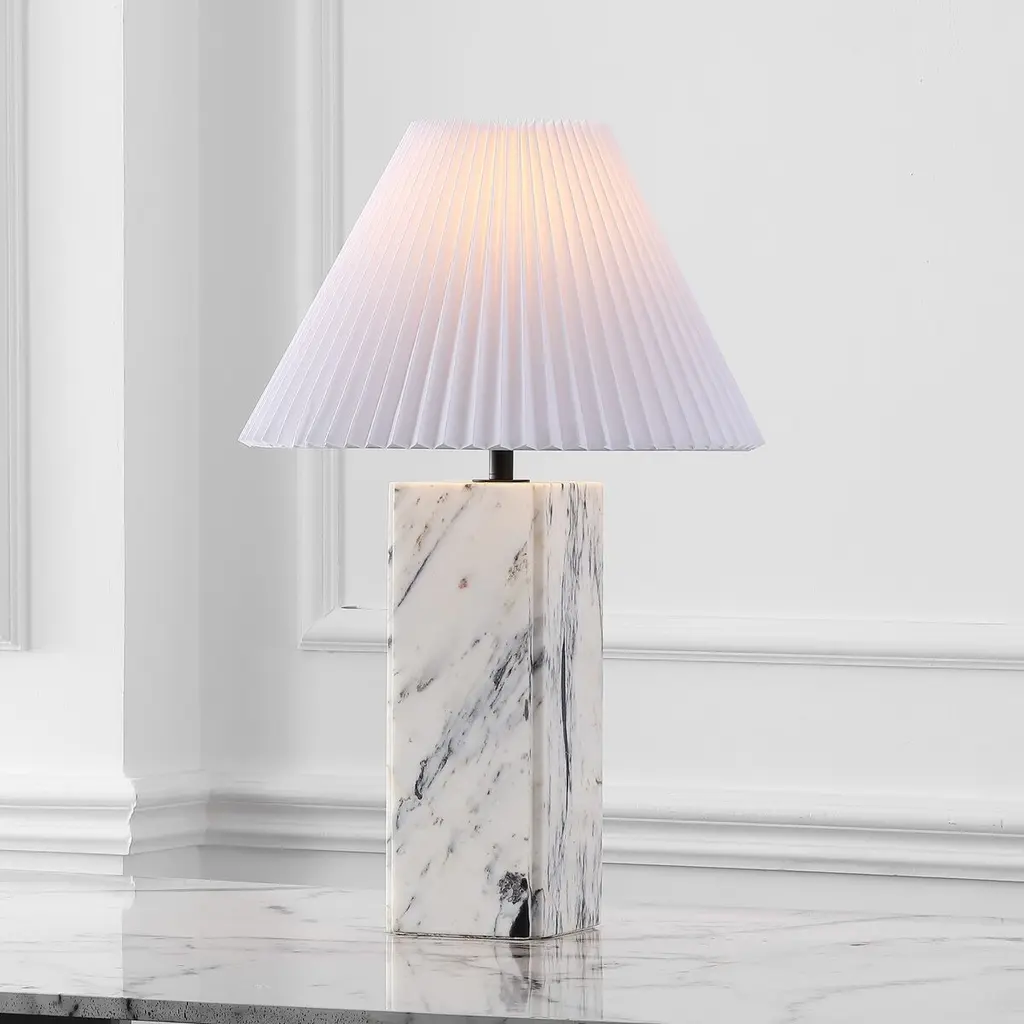 Illuminate your interiors with the impeccable design of the Lazelor Square Marble Table Lamp. This fixture offers undeniable visual allure and a sense of serene luxury to your space. Crafted from robust iron, the lamp features a marble base adding a touch of sophistication to the design. Additionally, the light is outfitted with a shade constructed of linen, delivering a soft and accommodating glow. This extraordinary combination of materials brings an extraordinary feel to your living or office space. Acquire the Lazelor Square Marble Table Lamp and amp up your home's look with this exquisite piece of lighting.