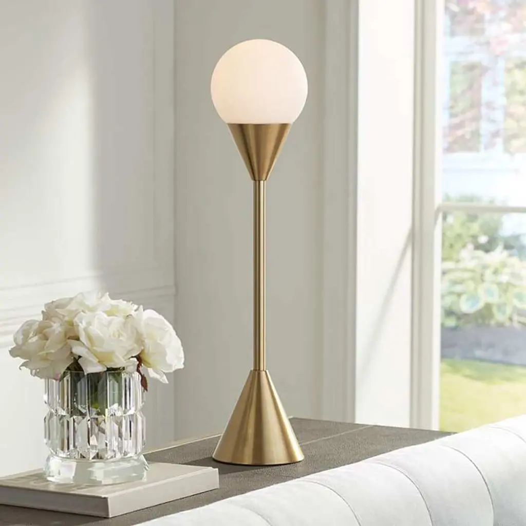 Leah 25 3/4" Brass And White Glass Globe Accent Lamp - 9.5" X 20" - 9.5" X 20" - Clear