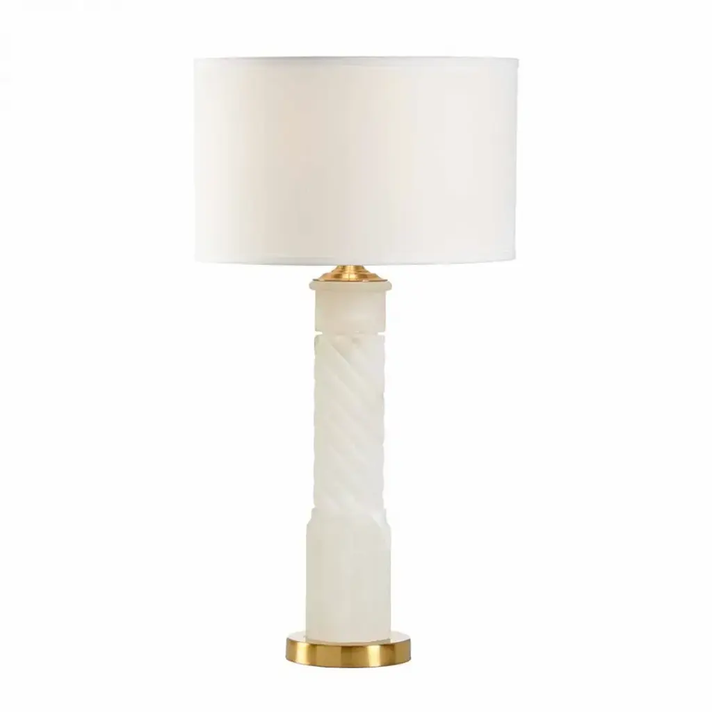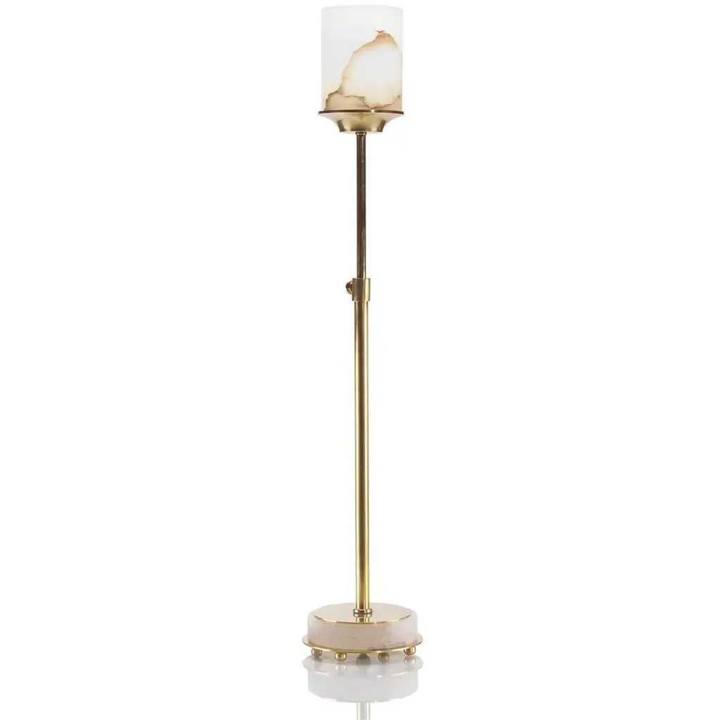 Leah 28 Inch 25.00 Watt Honey Brass And Alabaster Buffet Lamp Portable Light