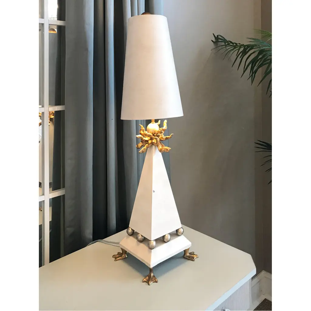 Leda 32 Inch 60.00 Watt Antique White With Gold Leaf Table Lamp Portable Light, Flambeau