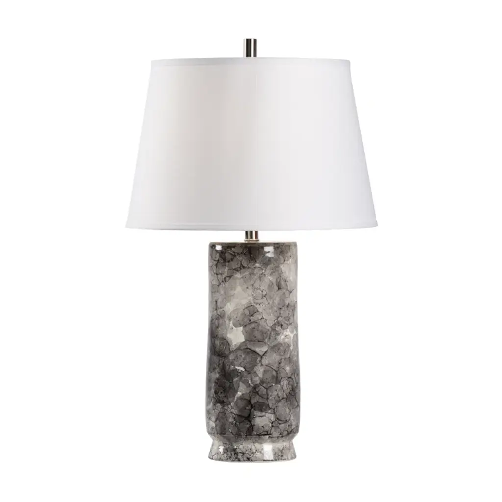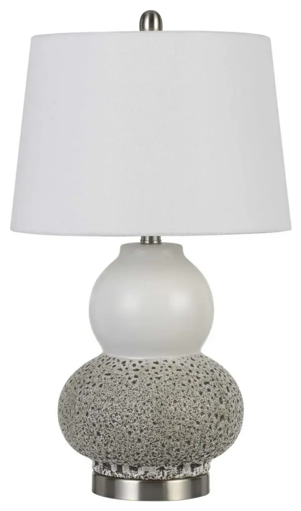 Illuminate your space with the elegant Ledger table lamp. Standing at 22.5 inches, this piece blends a contemporary design with timeless appeal. The light grey ceramic body, composed of 60 percent glass and 40 percent iron, adds a touch of sophistication to any decor. Its sleek form is complemented by a sturdy iron neck, ensuring it stands with presence on any table. This lamp is equipped with a standard E26 socket, ready to house your preferred bulb choice. The subdued, versatile color pairs effortlessly with a range of interior styles, making it a versatile addition to your living room, bedroom, or office. Designed for both functionality and style, the Ledger table lamp is a chic solution for ambient lighting needs. Transform your environment and enjoy the gentle glow it provides, creating an inviting and cozy atmosphere.