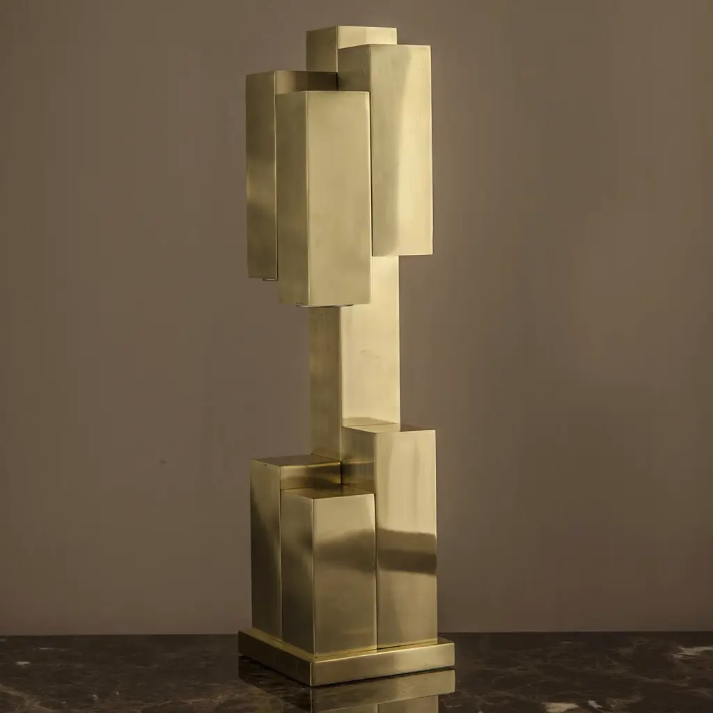 The Lego table lamp is a striking blend of contemporary design and functionality, crafted from protected brass that adds a touch of elegance to any space. Its unique structure showcases a playful yet sophisticated aesthetic, making it a perfect accent piece for modern interiors. The lamp features a black braided cord that enhances its stylish appeal. Equipped with three GU10 LEDs, it provides efficient and ample illumination.