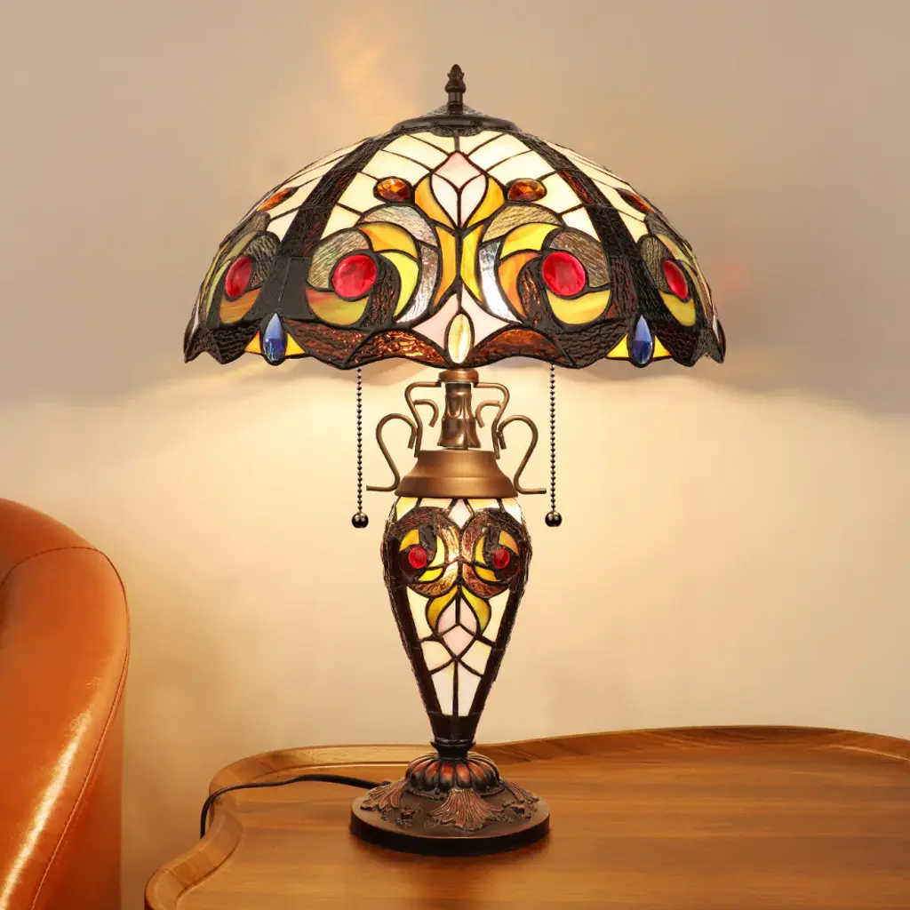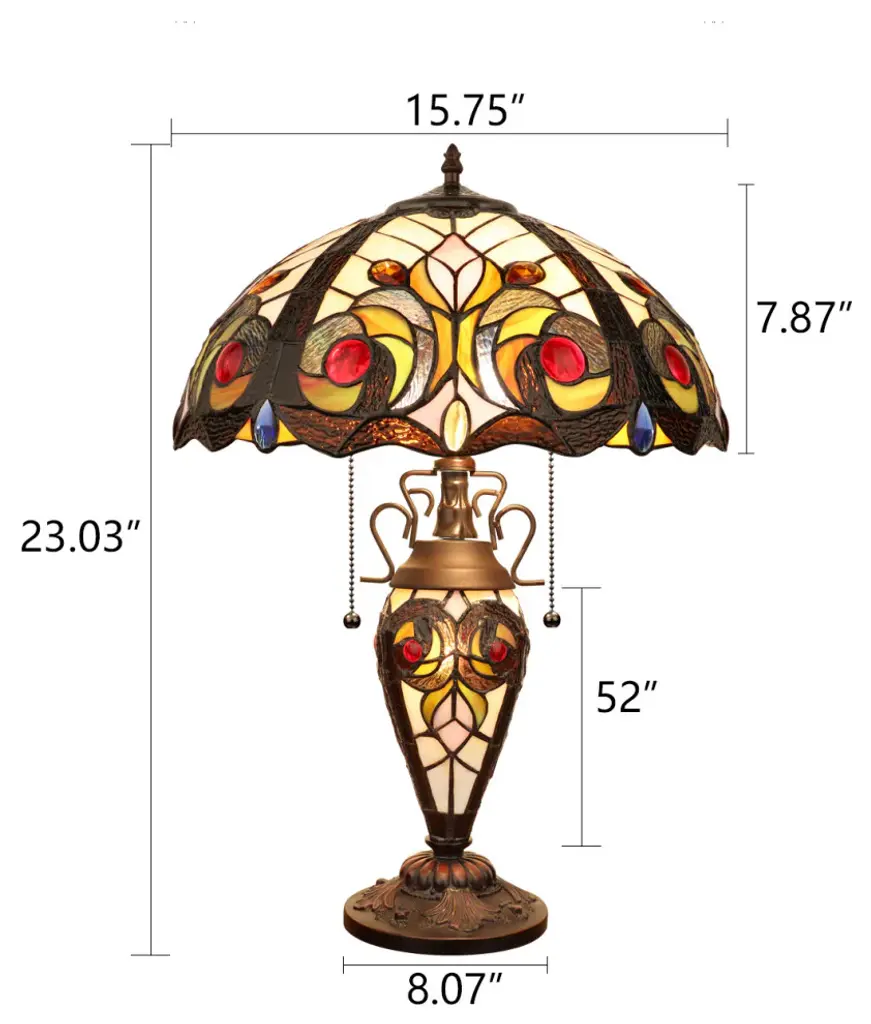 Lennon Tiffany 3-Light Victorian Double Lit Table Lamp 16" Shade