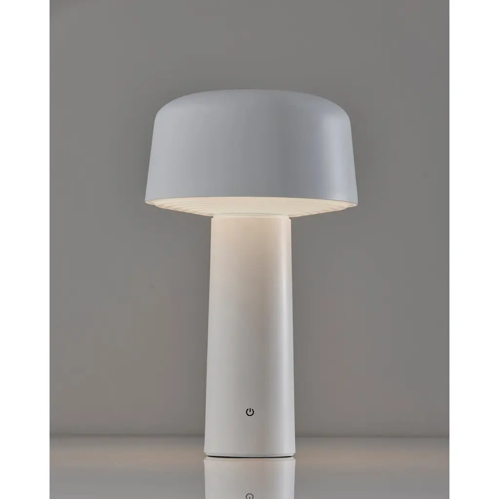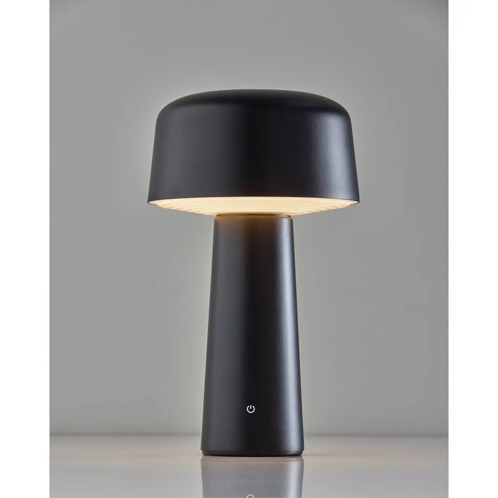 Meet the 4094-01 Lenny Cordless LED Table Lamp, a sleek and functional lighting solution designed to elevate your space. With its chic black finish and sophisticated black metal shade featuring a ribbed frosted diffuser, this lamp adds a touch of modern elegance to any environment. Standing at a compact 10 inches tall, it offers adjustable brightness levels with its 3 Level Touch Dimmer Switch, allowing you to create the perfect ambiance for any occasion. Powered by a rechargeable 1.5W LED, this lamp provides the convenience of portability without the hassle of cords. Plus, with an IPX4 location rating for outdoor use, it's ready to illuminate your indoor and outdoor spaces with style and ease. -Modern design: Sleek black finish and sophisticated black metal shade with ribbed frosted diffuser for a contemporary look. -Adjustable brightness: Features a 3 Level Touch Dimmer Switch, allowing you to easily adjust the light intensity to suit your mood or task. -Compact and portable: At just 10 inches tall, it's perfect for tabletops, shelves, or outdoor settings, providing versatile lighting wherever you need it. -Rechargeable LED: Powered by a rechargeable 1.5W LED, offering energy-efficient illumination without the need for cords or outlets. -Outdoor-ready: IPX4 location rated for outdoor use, ensuring durability and reliability even in challenging weather conditions, making it ideal for both indoor and outdoor use.