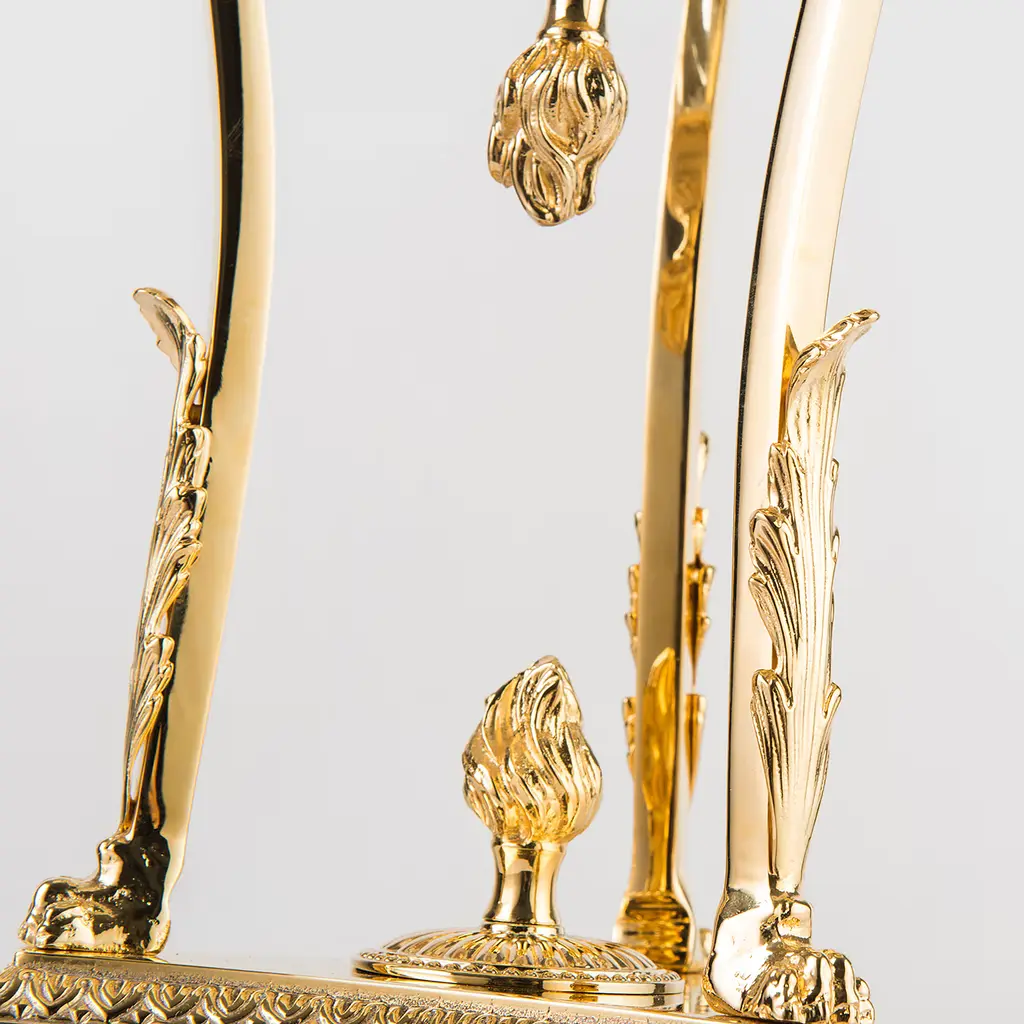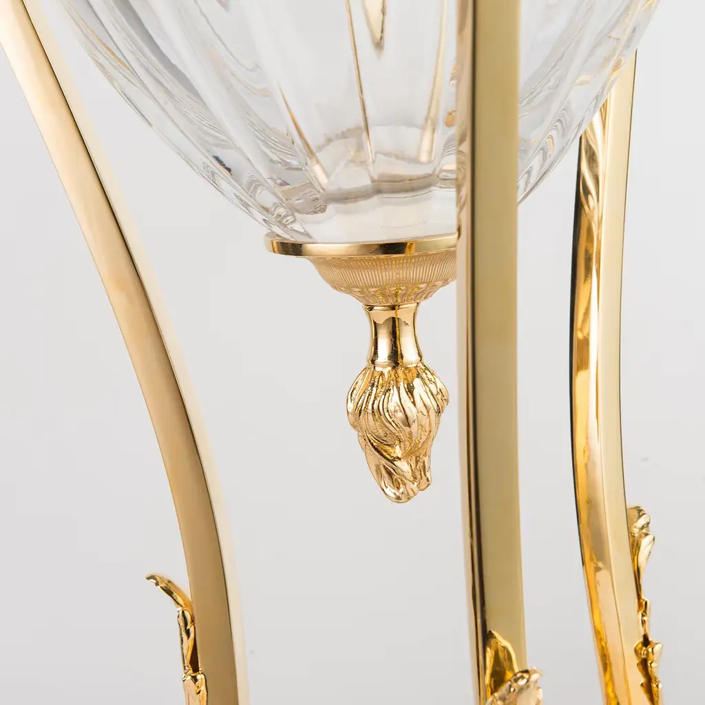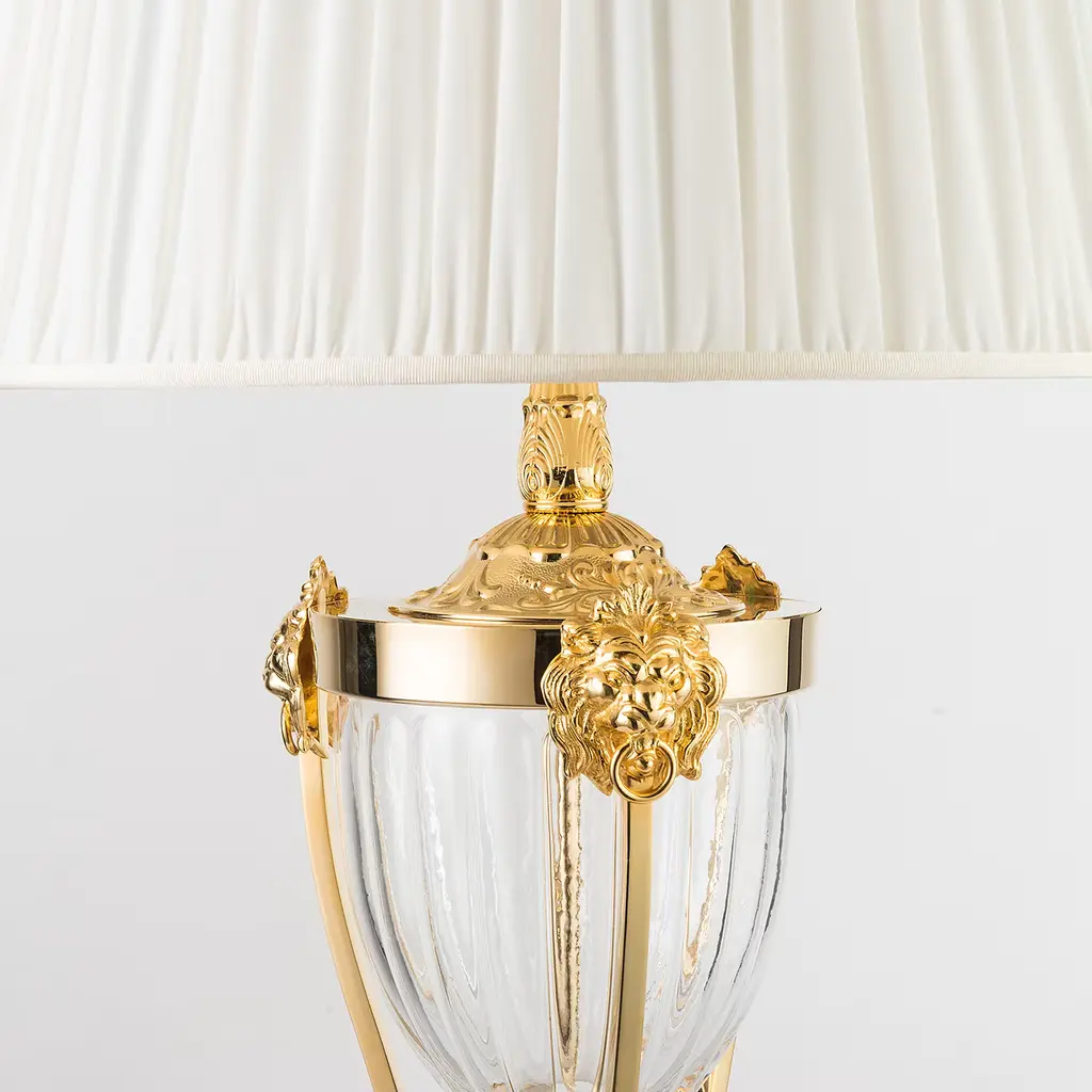 The "Leone" table lamp is a masterpiece of classic design. Its base is crafted from premium marble, providing a solid foundation and a touch of timeless elegance. The lampshade is made of hand-ground 24% lead crystal, which casts a warm, inviting glow. Intricate brass details, meticulously hand-chiseled, adorn the lamp. The E27 socket accommodates a maximum 60-watt bulb. The bulb is not included.