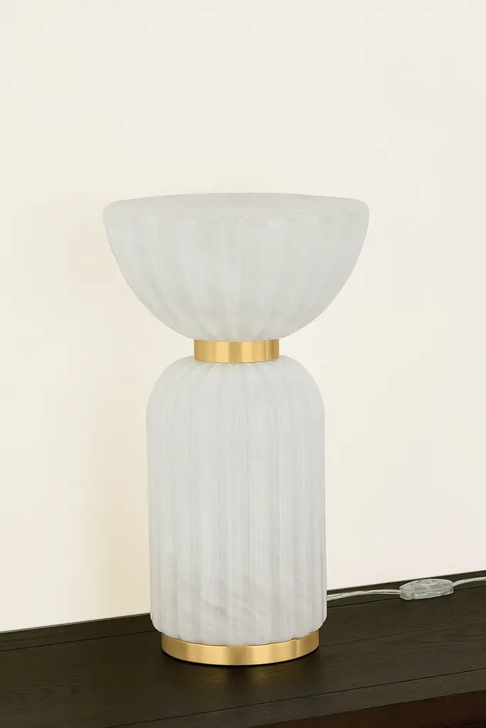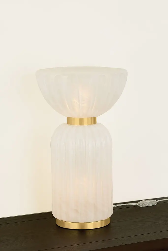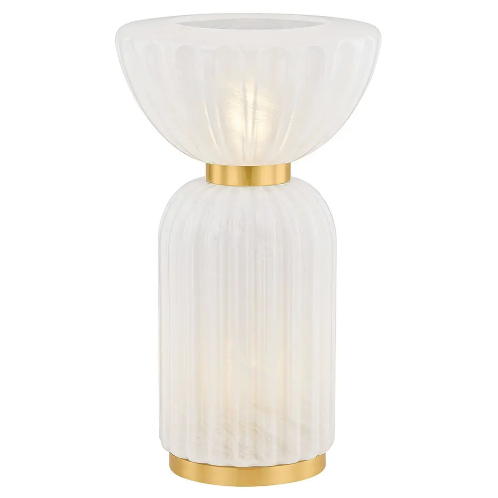Leor Fluted Table Lamp, Aged Brass/cloud Glass