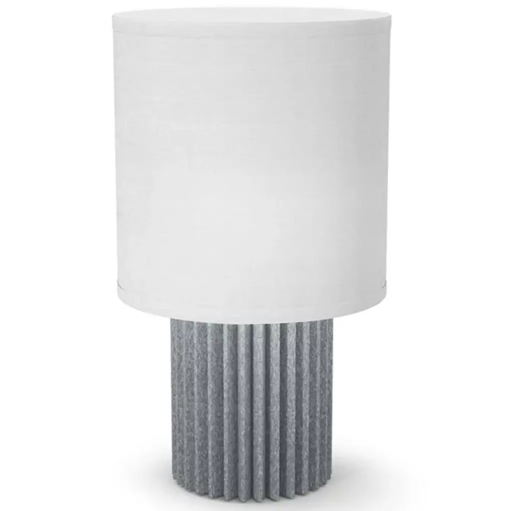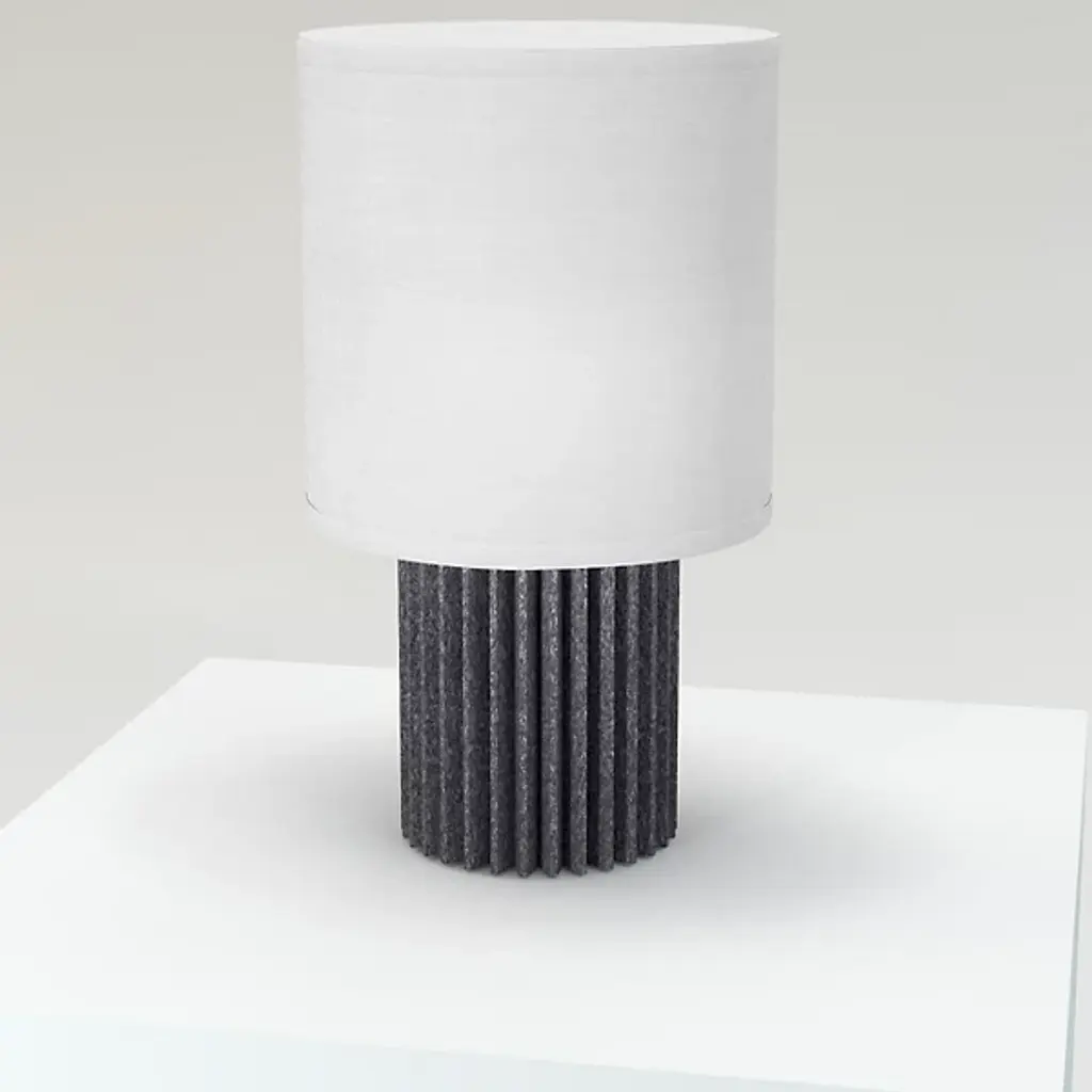 The Levon Table Lamp from Seascape Lamps features a cylindrical linen shade that extends beyond the width of the lamp’s base, creating a captivating and elegant silhouette. The lamp’s base, adorned with striped patterning, adds a touch of style to your decor. Crafted from felt material, Levon represents a commitment to quality and to contemporary aesthetics. Illuminated by an LED, a pleasant glow emanates from within the shade, bringing visibility to your interior space.