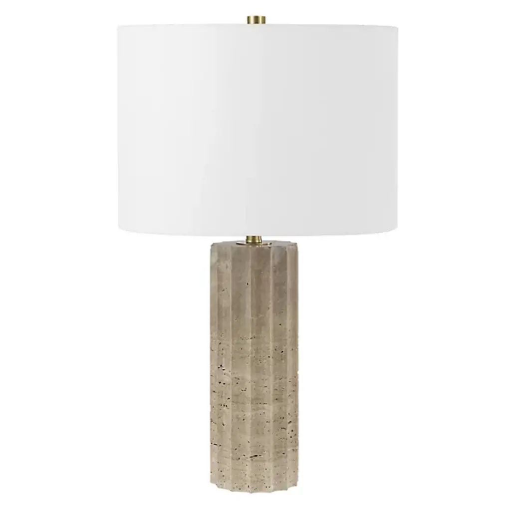 The Lewin Table Lamp from Alder & Ore is an inspired piece with classic appeal that blends well into your space. It features a soothing color palette, embodying a serene, calming, and sophisticated aesthetic. The travertine body suggests classical architecture and adds an earthy texture, making each piece unique, while the smooth fabric shade casts a warm, inviting glow. Transitional in style, this lamp enhances any room with its refined appeal and natural charm.