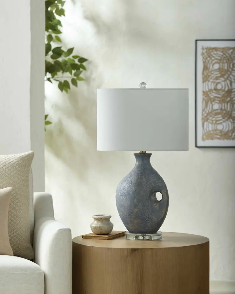 Lieusaint Blue Table Lamp - 26"h X 10"w X 15"d Circular