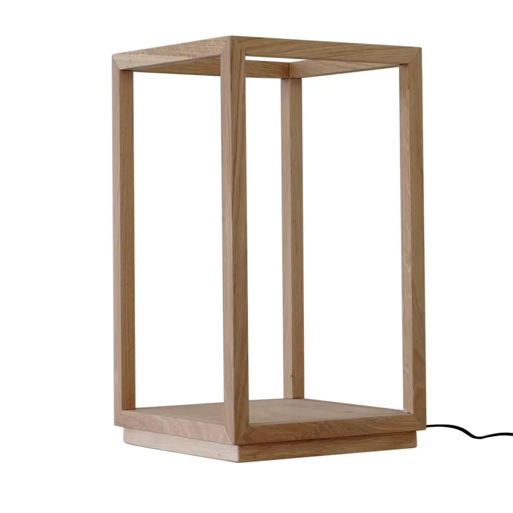This minimalist table lamp belongs to an elegant series of durmast designs with a strong Scandinavian-inspired feel. Boasting its natural finish implying unique shades and swirls, the parallelepiped-shaped silhouette hosts an LED strip that radiates its dimmable glow from the upper profile. A smaller variant and a cube-shaped version are also available in the Artemest catalog.