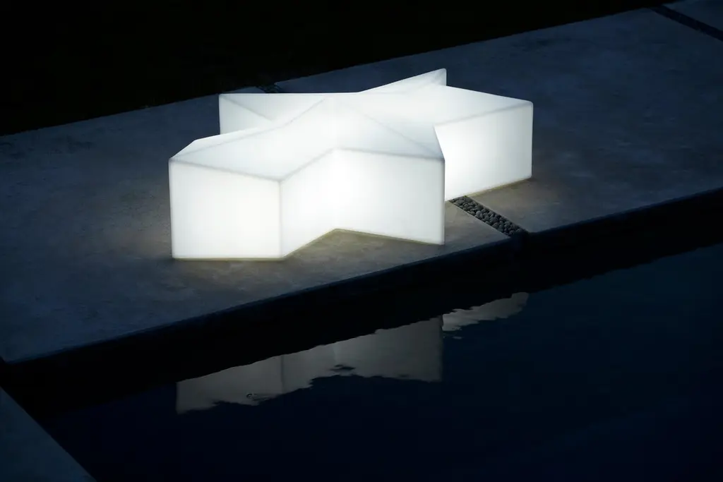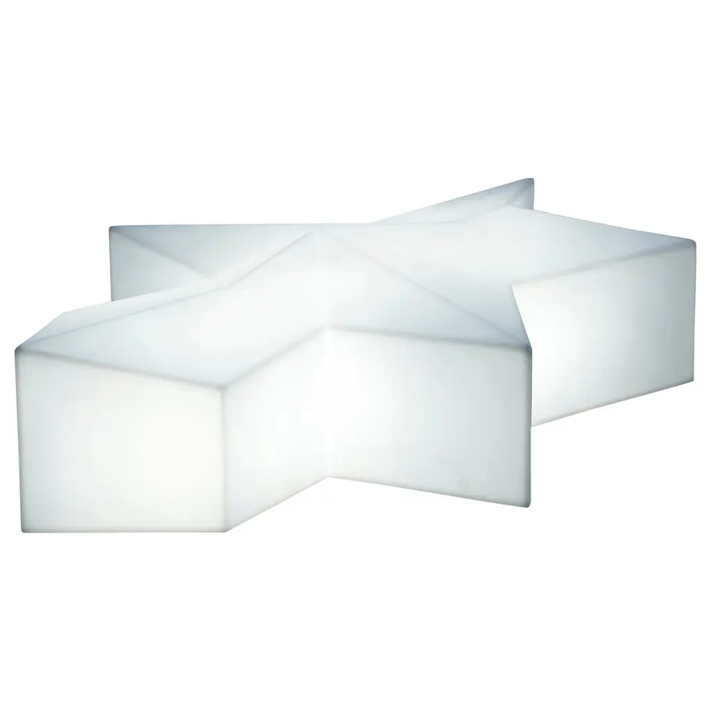 Lighted In Glacé Bench by Alessandro MendiniDimensions: D 125 x W 180 x H 50 cm. Seat Height: 50 cm.Materials: Polyethylene.Weight: 27 kg.This product is suitable for indoor use. Lighting system compatible with LED light bulbs. Bulb not included in the product price (unless otherwise specified). This product is compatible with the Candy Light RGBW LED module. Please contact us. The famous designer Alessandro Mendini created Glacè for Slide, a seat with an irregular and abstract shape that reminds of a star's tips. The unusual design makes the surface of the product faceted, creating magical light effects in its luminous version. The big dimensions and the refined line make Glacè ideal for contract projects and events that want to be unforgettable.Our stories happen in places precious to us. SLIDE was born from the desire to produce furniture and light to create the perfect atmosphere that highlights emotions.Design is inspiration, surprise, joy. It's the amazement of seeing something unique for the first time. It's creating spaces to feel good and live surrounded by beauty. It means giving a personal imprint to indoor and outdoor spaces. It means choosing your ideal element that is the perfect setting for emotions and experiences, which become indelible memories. The founder Giò Colonna Romano knows this well, combining his fervent imagination with thirty years of know-how in the processing of plastic resins, giving birth to SLIDE in 2002. The first note of amazement is the luminous furniture, which immediately became a must have in the world of events. Since 2015, his son Marco Colonna Romano has taken over the reins of the company, with the same desire to grow and innovate as his father. Thanks to a new panache and the team of young people it surrounds itself with, SLIDE becomes a beloved company for outdoor furniture: new shapes, materials and tactile textures have won the hearts and ideas of architects and interior designers around the world. SLIDE has thus created complete collections and furnishings, with new shapes, whose lines arise from collaboration with internationally renowned designers of the caliber of Alessandro Mendini, Paola Navone, Stefano Giovannoni, Fabio Novembre, Marcel Wanders, Karim Rashid, Marc Sadler, Francesco Favaretto and Marcantonio.New materials were chosen and inserted, initially soft and rigid polyurethane, and then comfortable cushions, waterproof fabrics, tactile textures ideal for completing the polyethylene furnishings with taste and class. But SLIDE does not forget its first essence, lighting: in recent years it has developed a line of much more technical lamps for large areas, essential in shape but with great visual impact. For the first time, Slide has managed to give an artisanal twist to an industrial process: to meet the increasingly high demands of living, the production creates non-replicable shades, in which every small imperfection enhances the industrial process and makes each piece unique . Because Slide's strength has always been the careful reading of the market, the creation of something that didn't exist and which then became necessary: here Slide continues its production in Buccinasco, on the outskirts of Milan, but its name and its products reach more than 130 countries around the world.