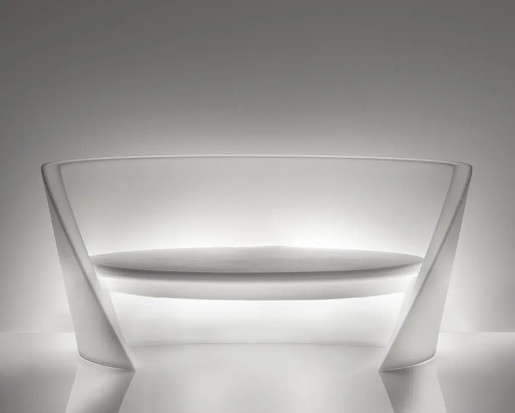 Lighted RAP Sofa by Karim RashidDimensions: D 80 x W 170 x H 75 cm. Seat Height: 36 cm.Materials: Polyethylene.Weight: 35 kg.Available in different color options. This product is suitable for indoor and outdoor use. Available in standard and lacquered (glossy/matte) colors. Cushions are available. Prices may vary. Please contact us. On request, the product can be made (with an extra charge) in the outdoor version with the IP55 protection degree of the electrical components. Stackable product. Lighting system compatible with LED light bulbs. Bulb not included in the product price (unless otherwise specified). The electrical wiring of the product is compatible with the Candy Light RGBW LED module.Our stories happen in places precious to us. SLIDE was born from the desire to produce furniture and light to create the perfect atmosphere that highlights emotions.Design is inspiration, surprise, joy. It's the amazement of seeing something unique for the first time. It's creating spaces to feel good and live surrounded by beauty. It means giving a personal imprint to indoor and outdoor spaces. It means choosing your ideal element that is the perfect setting for emotions and experiences, which become indelible memories. The founder Giò Colonna Romano knows this well, combining his fervent imagination with thirty years of know-how in the processing of plastic resins, giving birth to SLIDE in 2002. The first note of amazement is the luminous furniture, which immediately became a must have in the world of events. Since 2015, his son Marco Colonna Romano has taken over the reins of the company, with the same desire to grow and innovate as his father. Thanks to a new panache and the team of young people it surrounds itself with, SLIDE becomes a beloved company for outdoor furniture: new shapes, materials and tactile textures have won the hearts and ideas of architects and interior designers around the world. SLIDE has thus created complete collections and furnishings, with new shapes, whose lines arise from collaboration with internationally renowned designers of the caliber of Alessandro Mendini, Paola Navone, Stefano Giovannoni, Fabio Novembre, Marcel Wanders, Karim Rashid, Marc Sadler, Francesco Favaretto and Marcantonio.New materials were chosen and inserted, initially soft and rigid polyurethane, and then comfortable cushions, waterproof fabrics, tactile textures ideal for completing the polyethylene furnishings with taste and class. But SLIDE does not forget its first essence, lighting: in recent years it has developed a line of much more technical lamps for large areas, essential in shape but with great visual impact. For the first time, Slide has managed to give an artisanal twist to an industrial process: to meet the increasingly high demands of living, the production creates non-replicable shades, in which every small imperfection enhances the industrial process and makes each piece unique . Because Slide's strength has always been the careful reading of the market, the creation of something that didn't exist and which then became necessary: here Slide continues its production in Buccinasco, on the outskirts of Milan, but its name and its products reach more than 130 countries around the world.