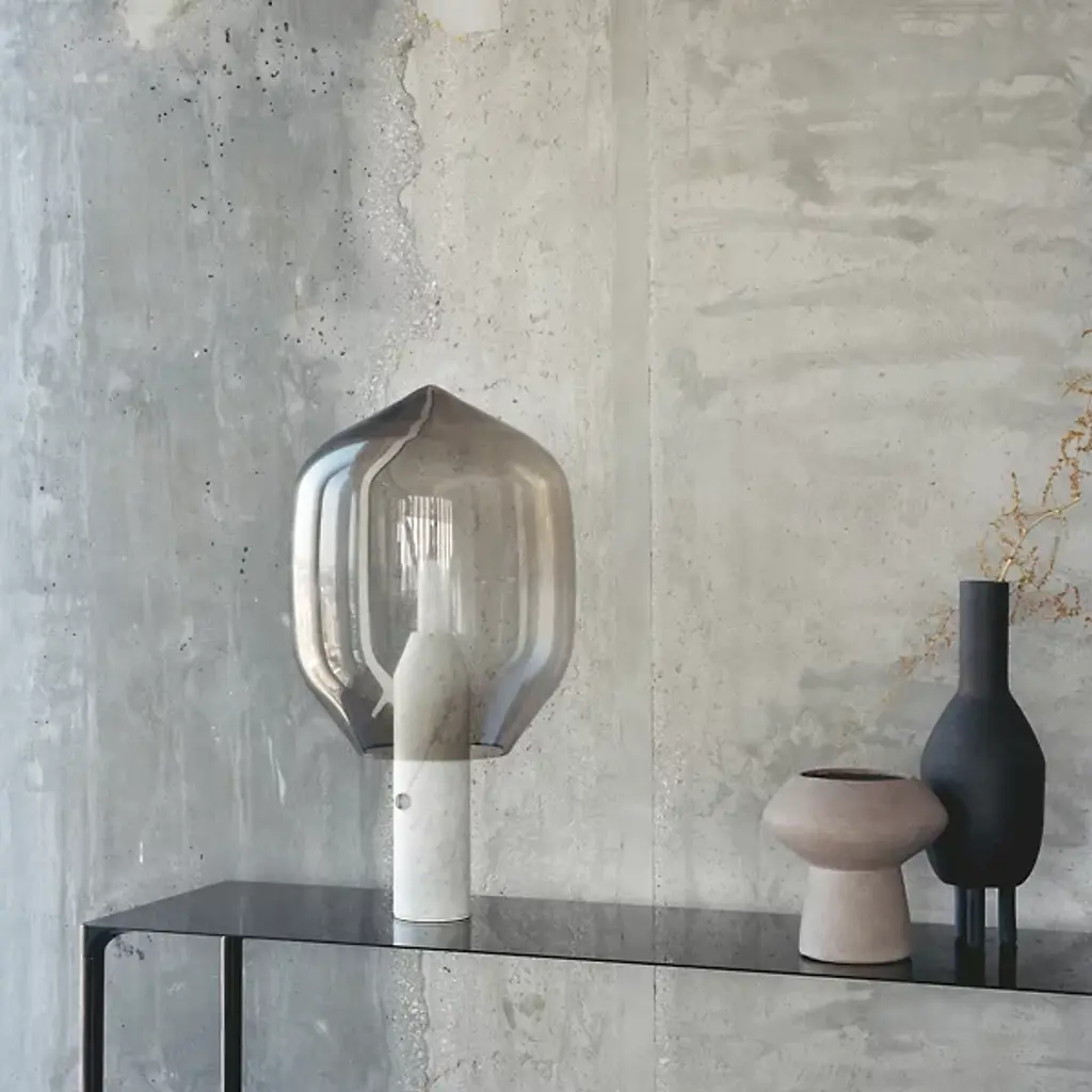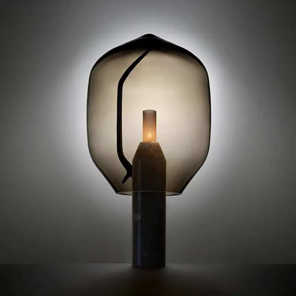 The Lighthouse LED Table Lamp from Established & Sons is artistic and elemental, putting a sculptural, luxurious edge on a classical shape. Designed by Ronan & Erwan Bouroullec, its inspired design uses a column of pure marble to elevate strong and efficient LED lighting inside a blown glass shade, striking a delicate balance between traditional craftsmanship and modern simplicity. The lamp within is controlled by a push dimmer, while the translucent shade transforms bright, direct light into an even ambiance at the top of a tower that resembles its namesake.