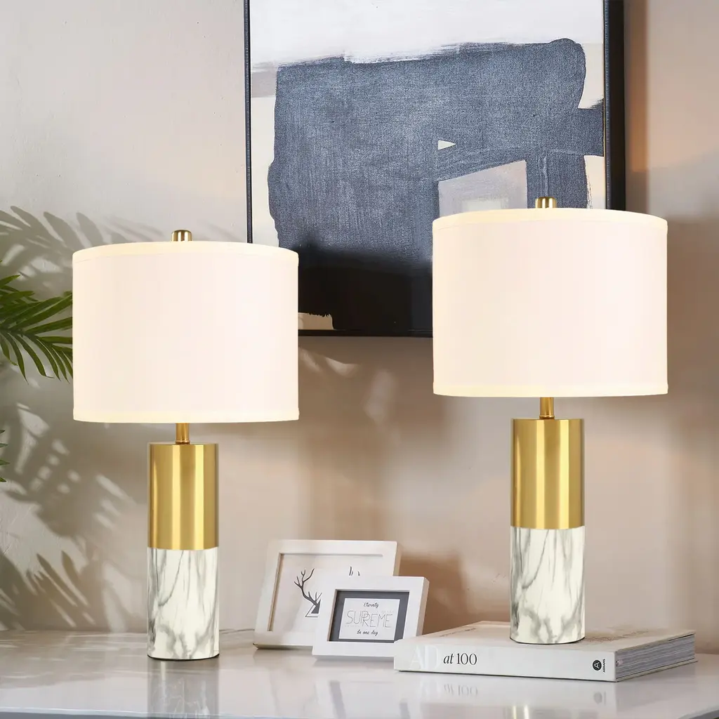 Lighting Marble Gold Table Lamps (Set Of 2) - White