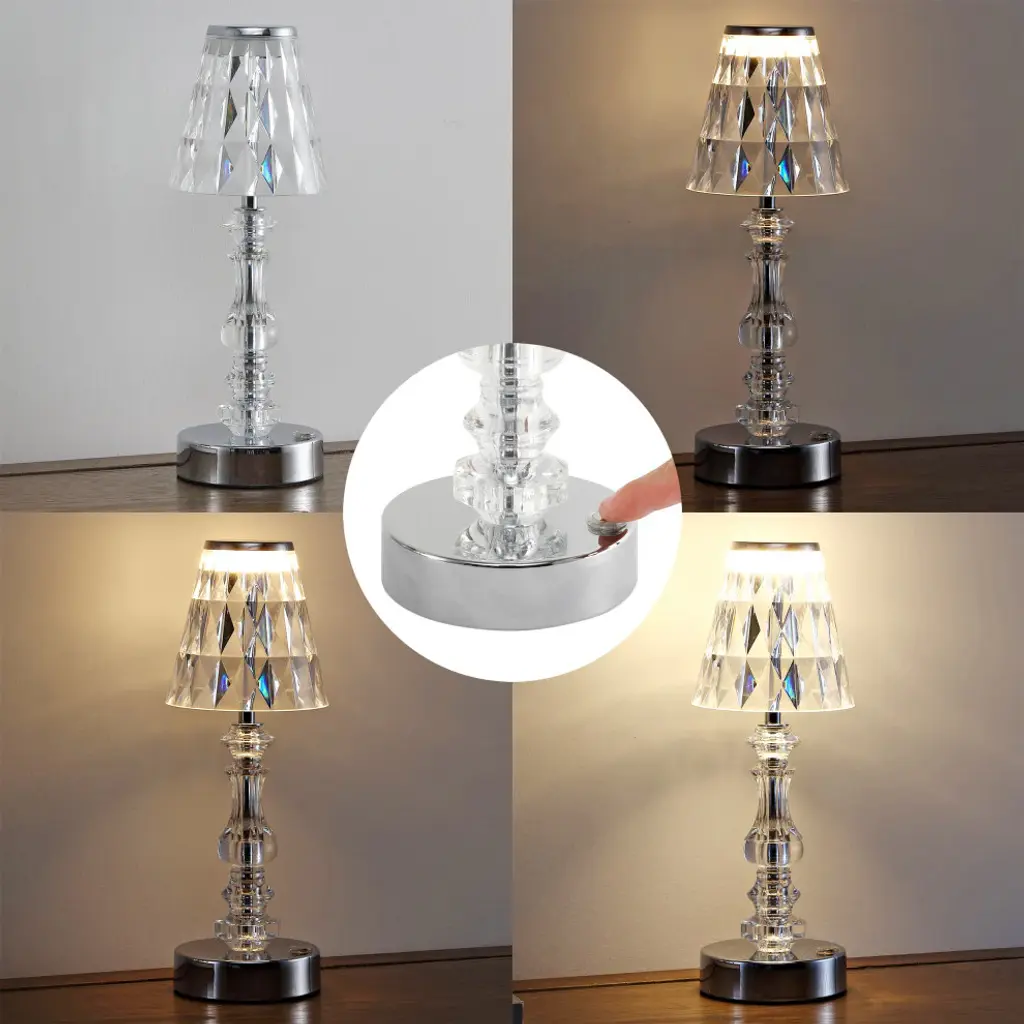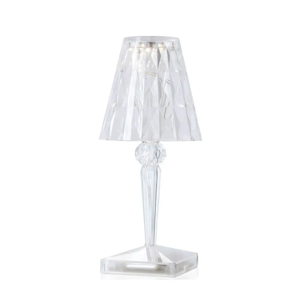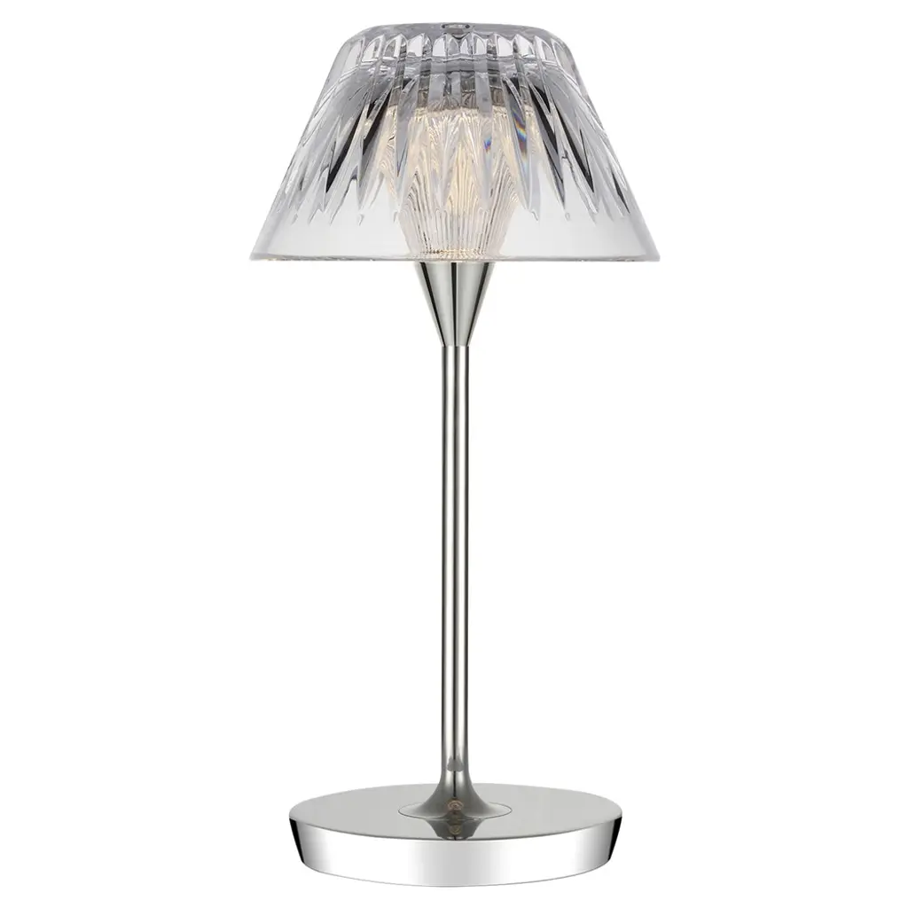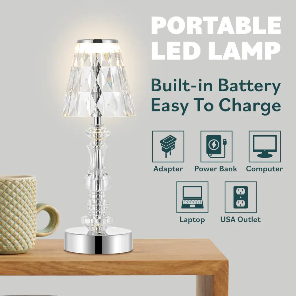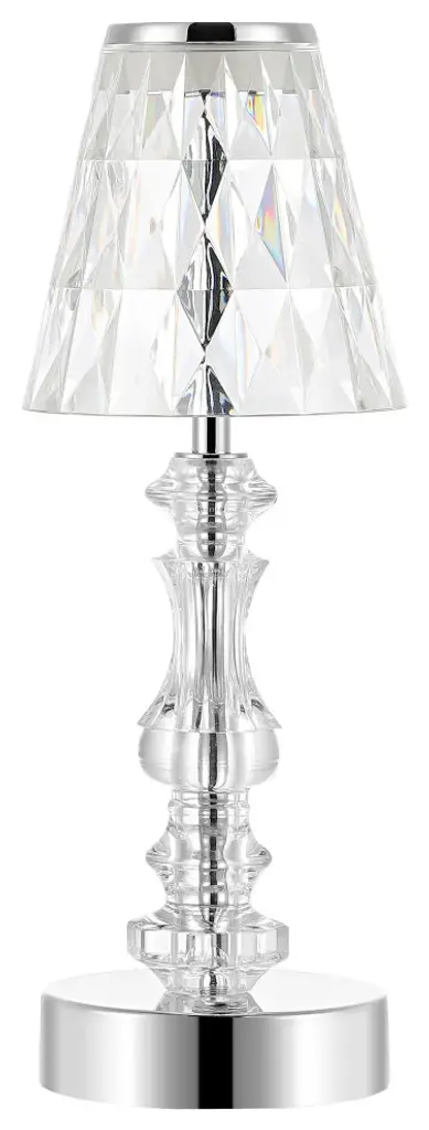 Add a touch of vintage glamour to a bar, console, or bath vanity with our sparkling faux crystal accent lamp. Made from durable clear acrylic, this cordless, rechargeable mini lamp features a bright LED bulb and a faceted clear shade. Use one to add sparkle to your dining room, console, living room, or bedroom.Features:• Sparkling acrylic crystal gives this cordless accent lamp a unique modern glam style• Cordless, portable lamp has a rechargeable battery for convenient accent lighting on a table, console, or vanity• This accent lamp''s sparkling acrylic shade is glamorous and safe - it uses a cool LED bulb• Integrated 2W LED bulb• Color: Clear/Chrome• Body Material: Acrylic• Includes: One (1) lamp• Assembly RequiredDimensions:• Lamp: 12.75 inches high x 4.5 inches wide x 4.5 inches deepAbout us:You see a lamp.We see a decorative work of art.A perfectly curved shade casts a dramatic shadow on a floor. A silk cord you never want to hide. Compatible with LED lightbulbs: as easy on the environment as they are on the eyes. The JONATHAN Y Lighting collection considers every detail from impeccably sourced materials to designer styling. And our prices are so attractive, we''ve transformed a functional necessity into a fashion accessory.JONATHAN Y Lighting - a fashion revolution in home decor.