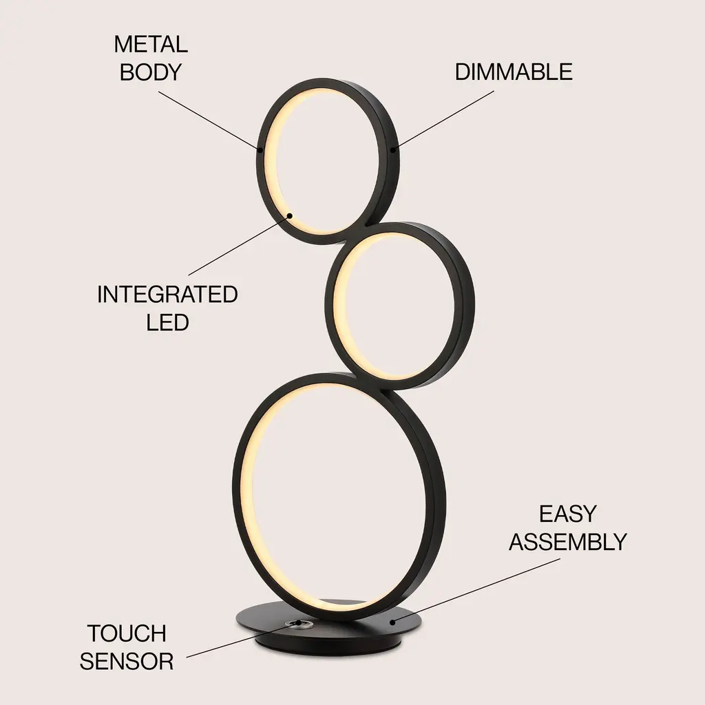 Our minimalist, modern table lamp features energy-saving integrated LEDs that can last for years. This slim, 17" tall lamp provides bright, clear light for a living room, dining room, or office. Warm LED lighting is perfect for reading; add an LED-compatible dimmer switch for soft, ambient light. Safe, energy-efficient LEDs stay cool and add a contemporary accent to your home.Features:Dimensions:About us:You see a lamp.We see a decorative work of art.A perfectly curved shade casts a dramatic shadow on a floor. A silk cord you never want to hide. Compatible with LED lightbulbs: as easy on the environment as they are on the eyes. The JONATHAN Y Lighting collection considers every detail from impeccably sourced materials to designer styling. And our prices are so attractive, we've transformed a functional necessity into a fashion accessory.JONATHAN Y Lighting - a fashion revolution in home decor.
