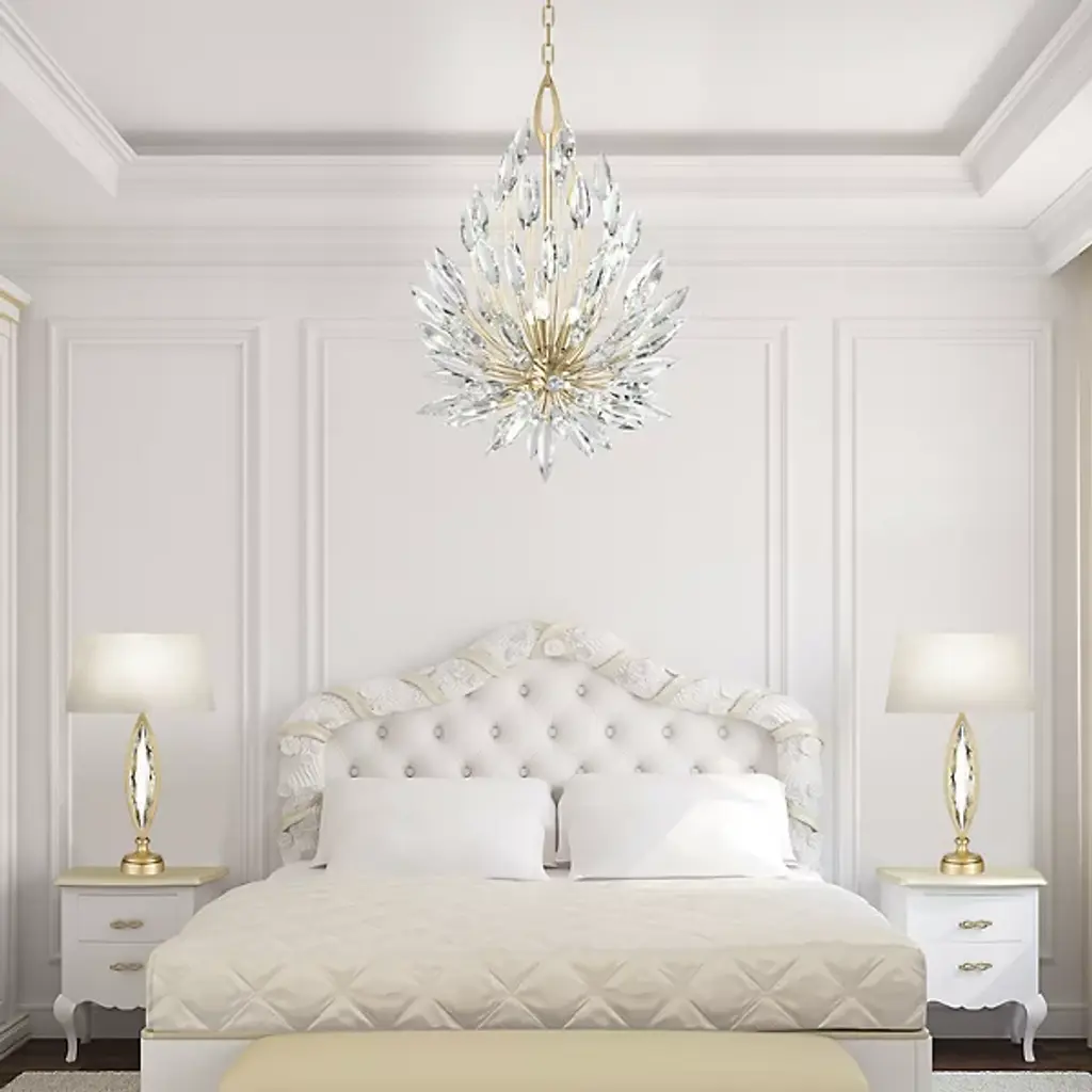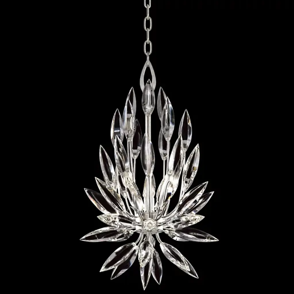 Enliven your indoor living spaces with the Lily Buds Chandelier from Fine Art Handcrafted Lighting. An elegant fixture anchored by a smooth disc canopy; it uses a short chain to transition to a metal rod that drops a small round hub with inset lamping below it. This hub sends up curving metal stems of different lengths around it, capped with faceted crystal cut into a lily bulb shape that exudes a natural presence as it restrains the lamping’s excess brightness.