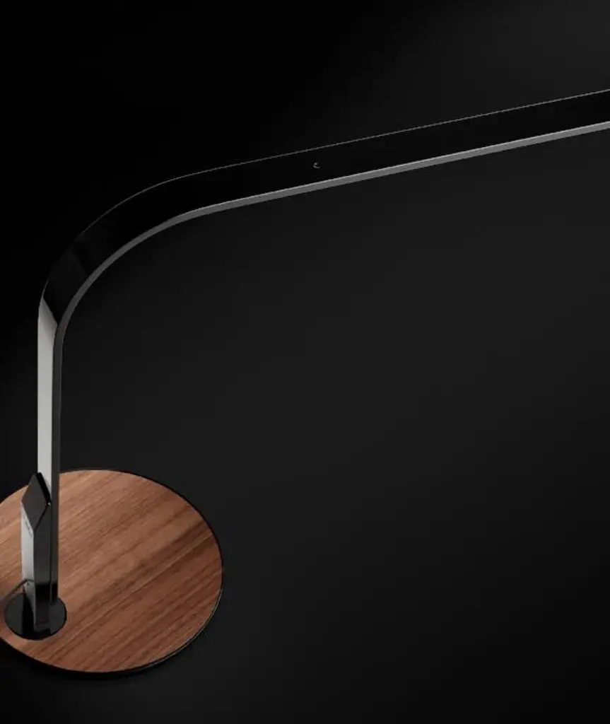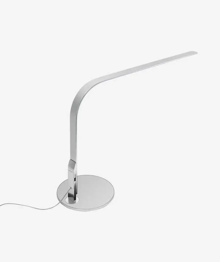 LIM360 is a personalized, high-performance task lamp whose slim, compact frame allows light to assert its presence. Its efficient form shapes a plane of illumination powered by an equally efficient power source — a continuous array of high-output, energy-saving LEDs. Furthering its suitability for workspaces, it combines seamless, 360° arm rotation with an integrated USB port for charging mobile devices. The base offers a soft, textured refuge for such devices and personal items.
