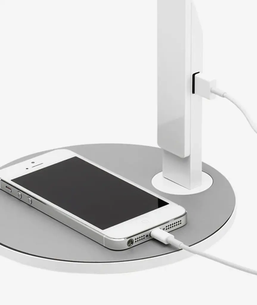 LIM360 is a personalized, high-performance task lamp whose slim, compact frame allows light to assert its presence. Its efficient form shapes a plane of illumination powered by an equally efficient power source — a continuous array of high-output, energy-saving LEDs. Furthering its suitability for workspaces, it combines seamless, 360° arm rotation with an integrated USB port for charging mobile devices. The base offers a soft, textured refuge for such devices and personal items.
