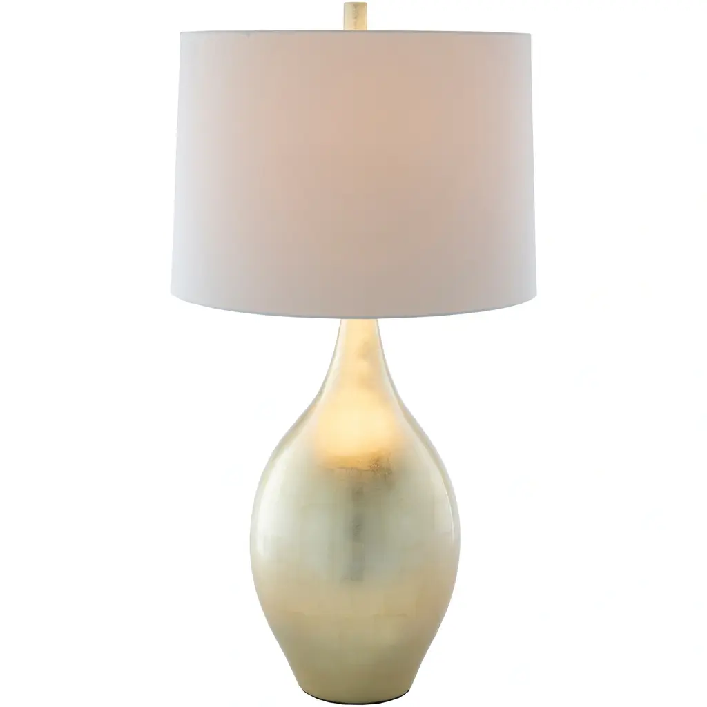 With a classic shape, the Lindfield lamp will work seamlessly with many different styles. The lacquered bamboo gourd-shaped body adds a soft sheen with a touch of textural interest, while remaining fairly lightweight. Also features a crisp white faux silk shade. Standing at 30.3 inches high, this lamp is a perfect height for a nightstand or console table. Wipe clean with a dry cloth.