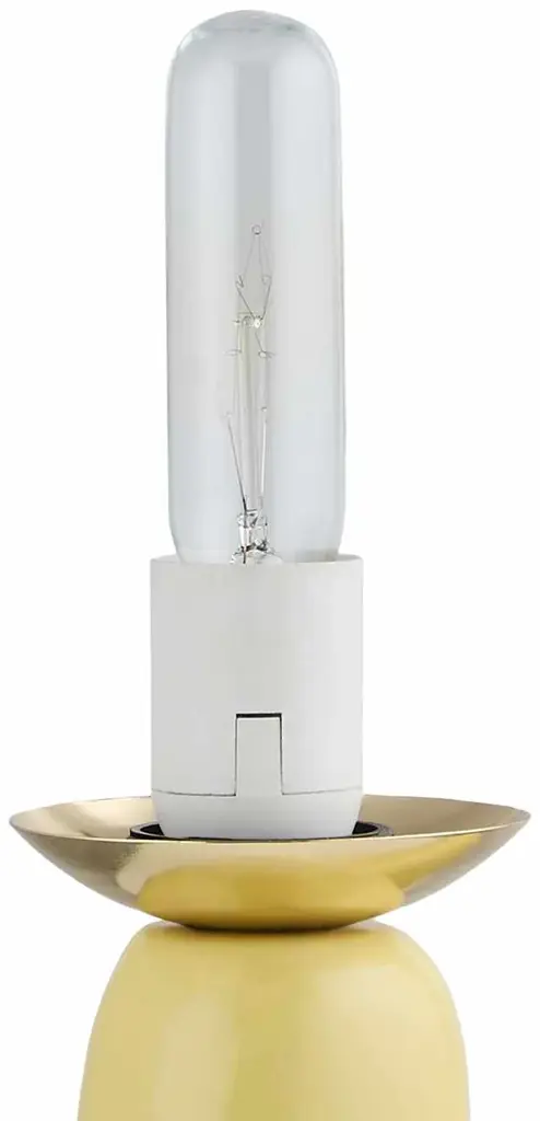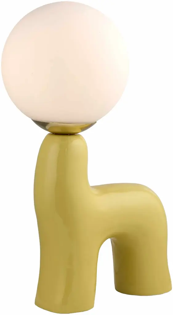 Collection: Lindoeste Colors: Yellow, White, Translucent Material: Body: Ceramic / Shade (Outside): Glass / Shade (Inside): Glass Styles: Transitional,Traditional Made In: China Lighting Type: Accent Table Lighting Shade Material: Glass, Glass Shade Color: White, White Cord Length: 5' Switch Type: On/Off Number of Bulbs: 1 Socket Type: E-26 Bulb Wattage: 25W