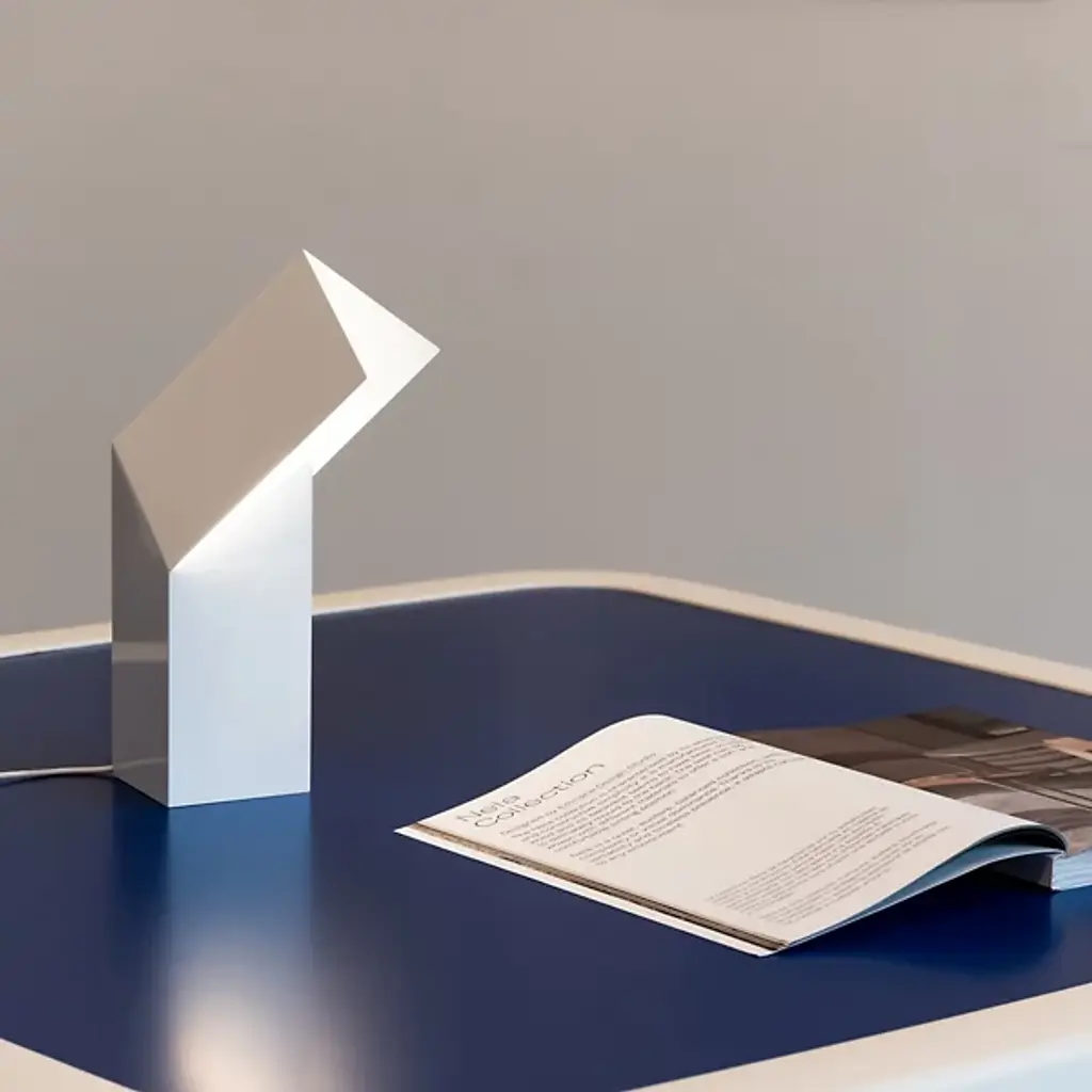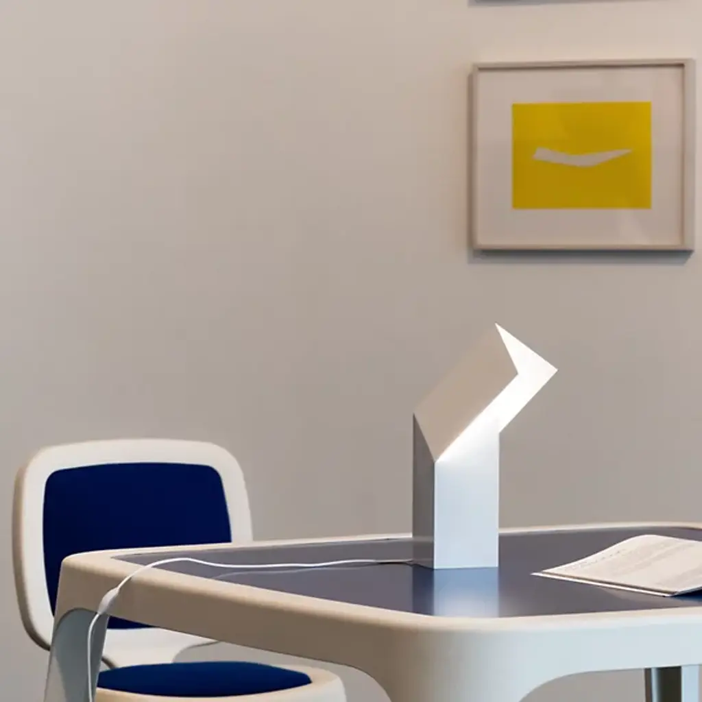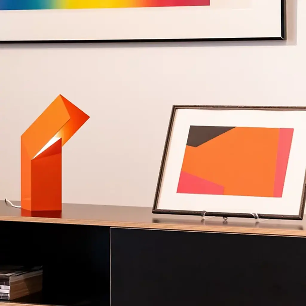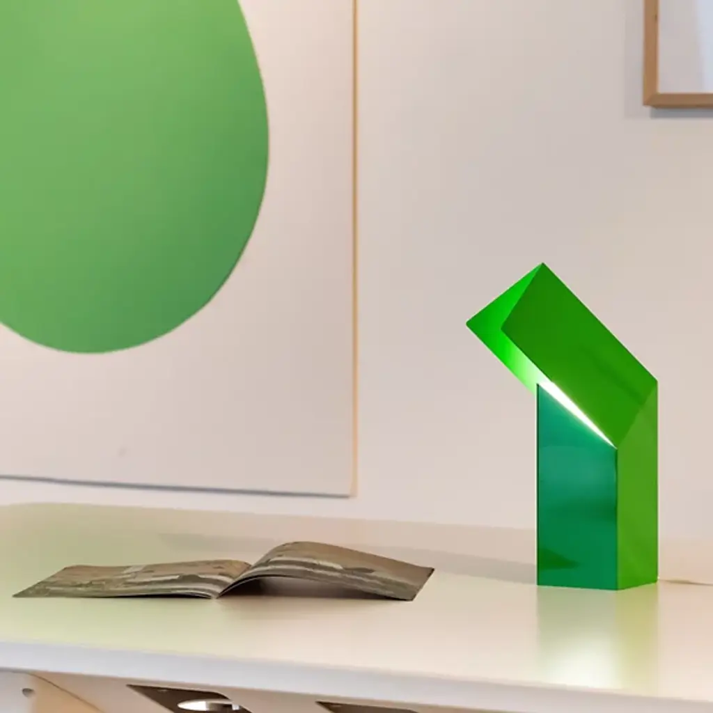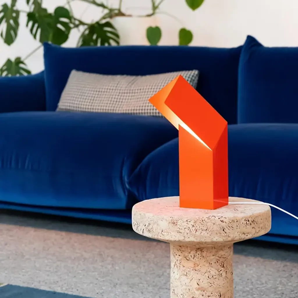The Lineair LED Table Lamp from Y.S.M. transforms its environment with angular geometry and bold design. Created in 2023 by iconic Belgian designer Baptiste Vandaele, this lamp embodies Bauhaus principles in a contemporary style and features a robust steel and aluminum structure. Each seam is meticulously crafted using metal bending and welding techniques, each vibrantly colored fixture differing subtly from any others. The lamp showcases two planes angled at 45 degrees, creating a dynamic interplay of light and shadow. Powered by a USB cable, the fixture can easily shift from functional desk lighting to ambient accent lighting when aimed at a nearby wall.