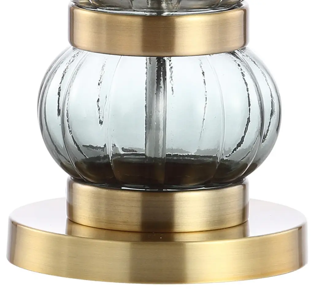 Linna 27.5" Glass And Metal Table Lamp, Smoked Gray And Brass Gold