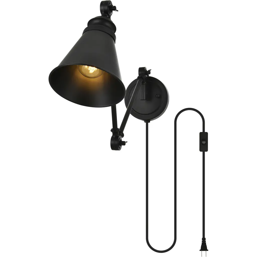 Lisa Swing Arm 1-Light Modern Midcentury Iron Usb Charging Port Led Sconce, Gray