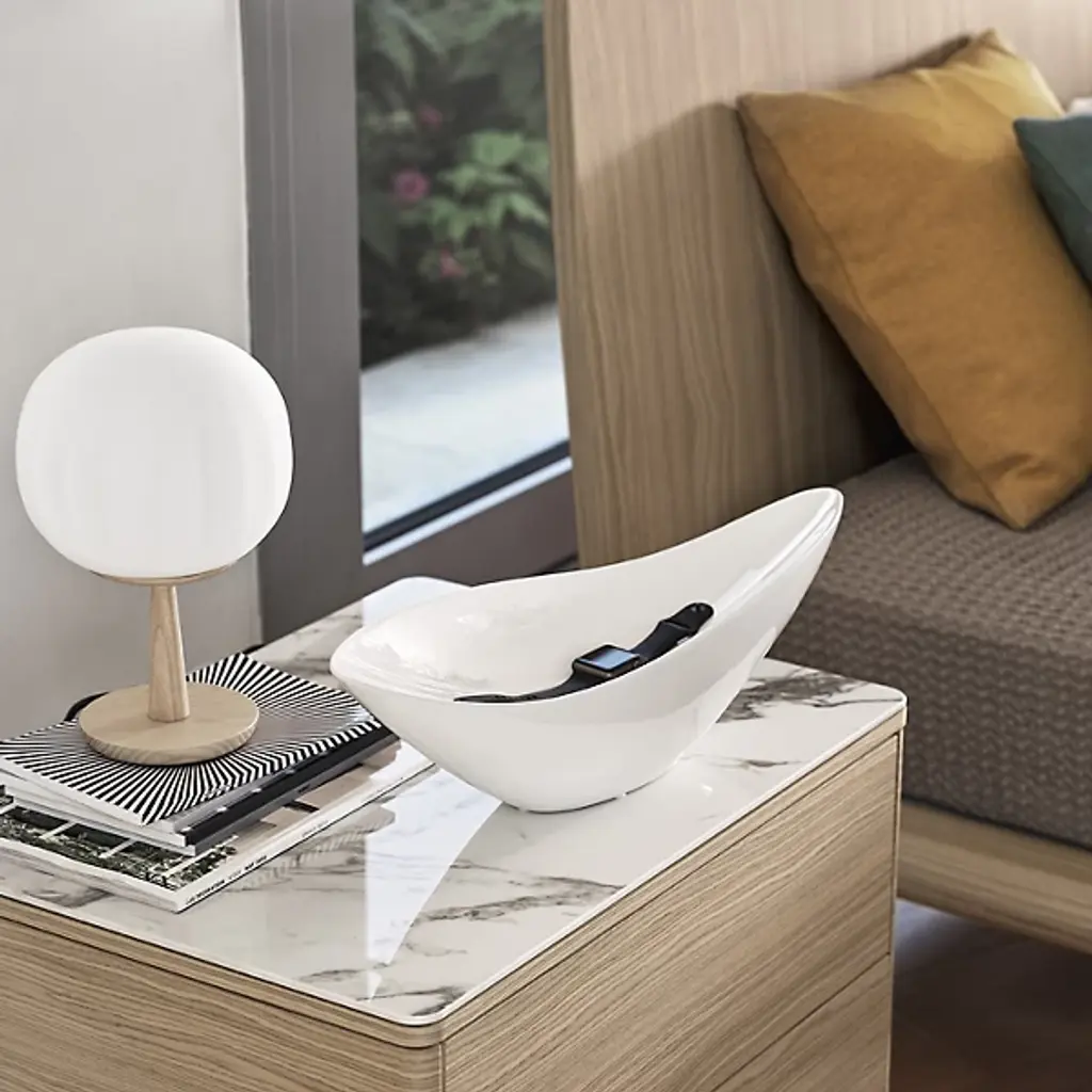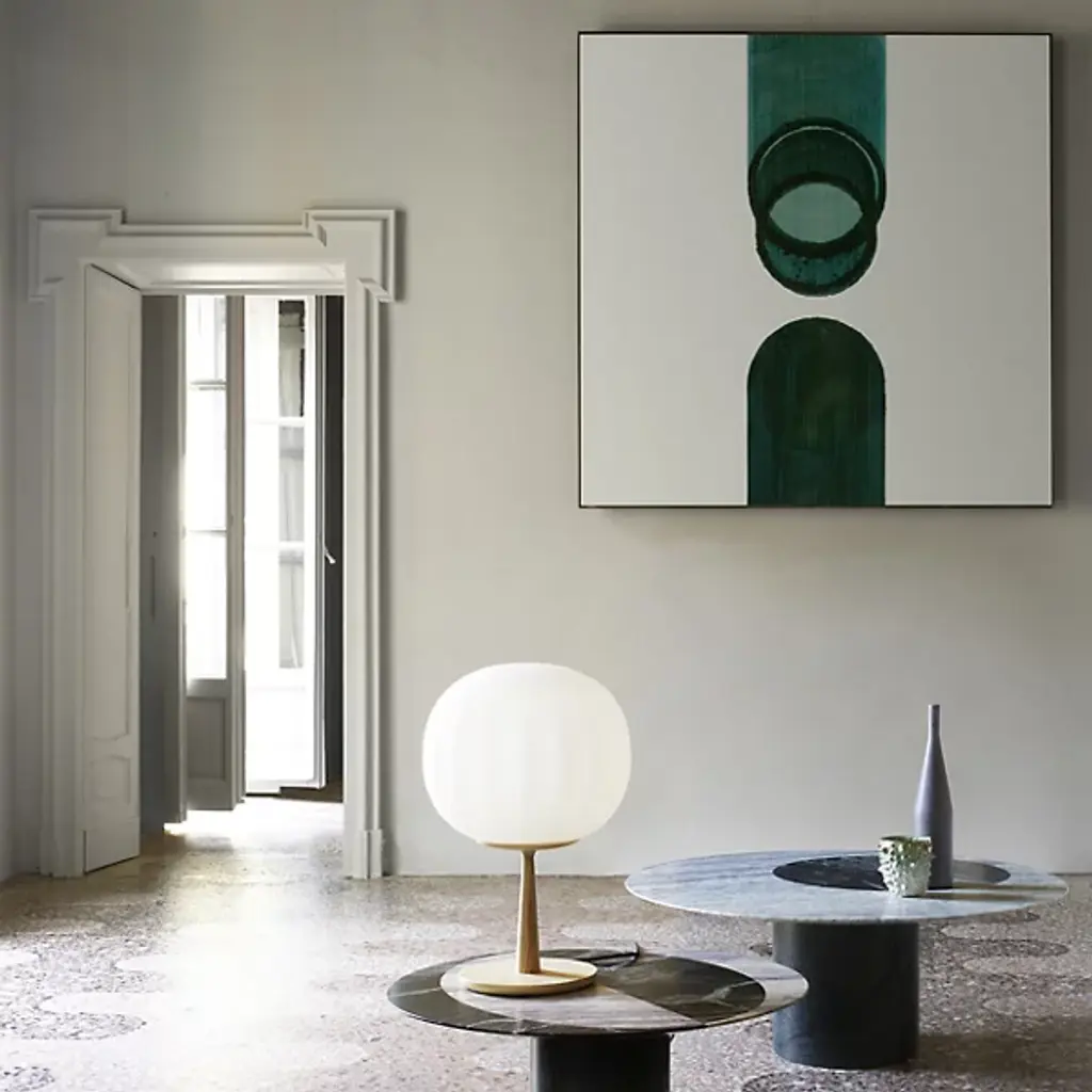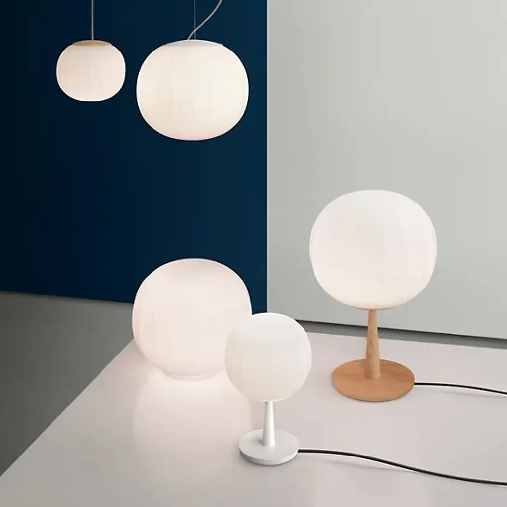 The Lita Mini Table Lamp with Base from Luceplan is a human-centered design, combining familiar motifs in a sculptural display. Creator David Dolcini’s goal for each piece is to make magic by balancing complexity and simplicity. This design starts with a base of smooth curves that recall mid-century motifs. On top lays a blown glass shade whose round form appears to expand with a series of vertical slits. These slits evoke the bamboo armature of traditional oriental lanterns. They silhouette beautifully as the globe radiates with a warm ambiance.