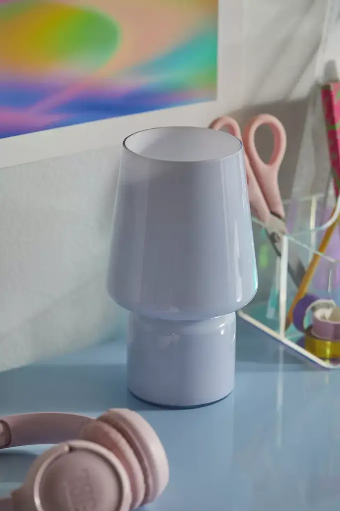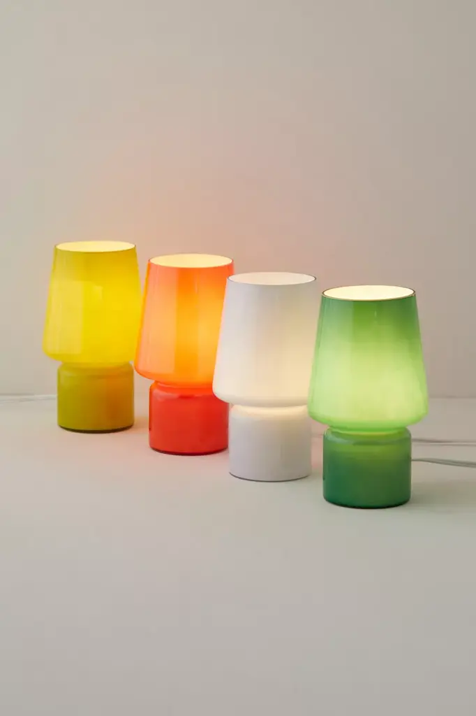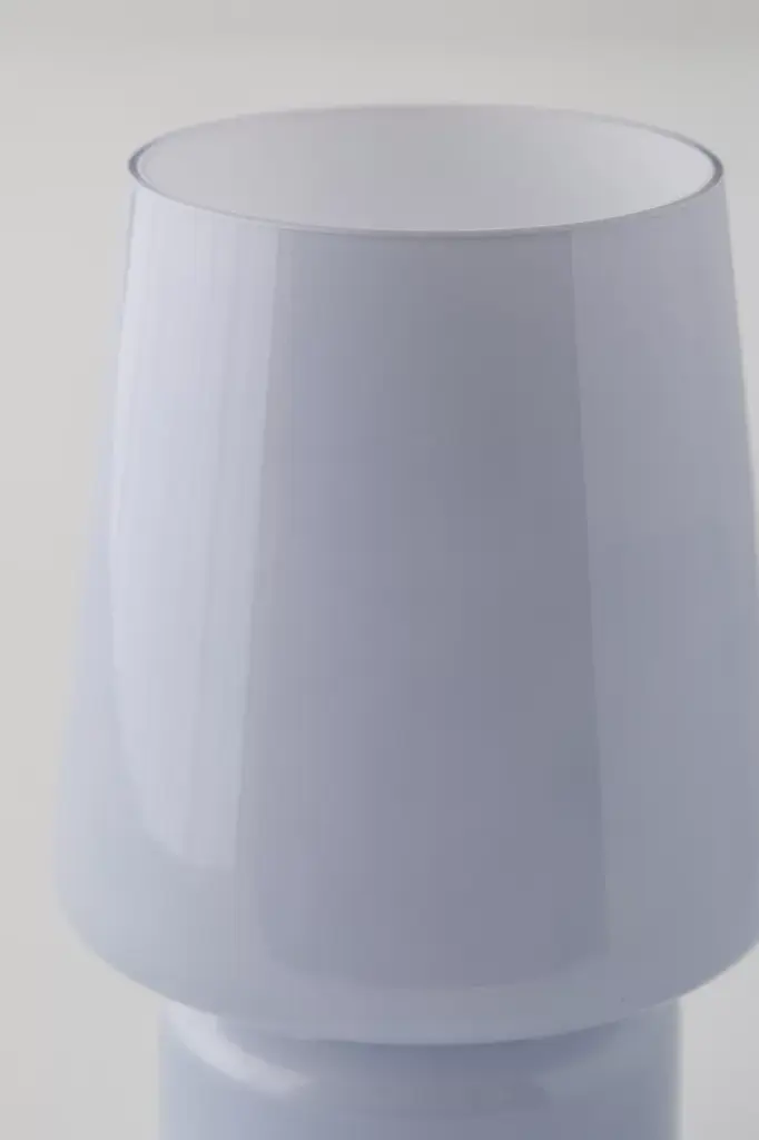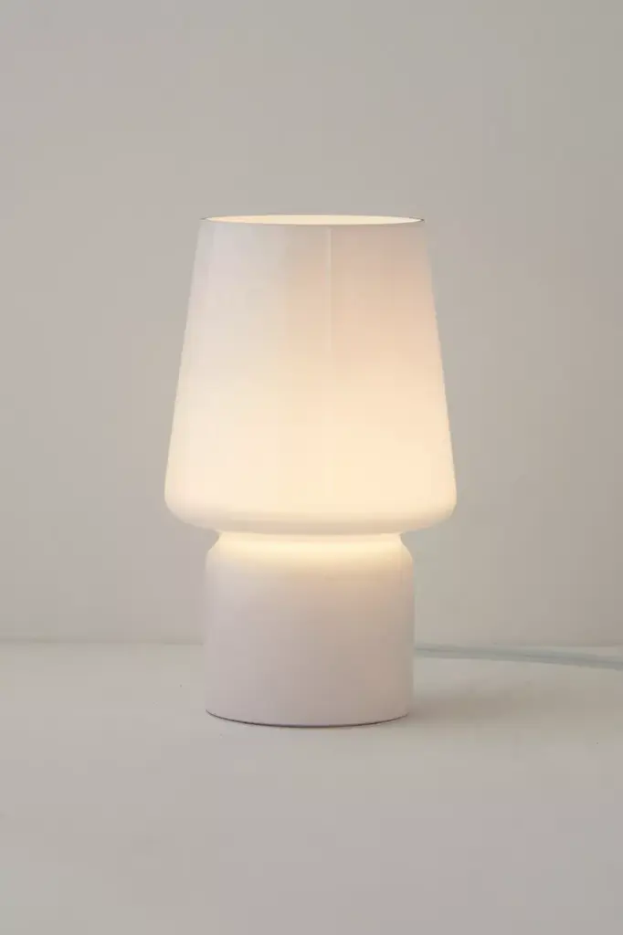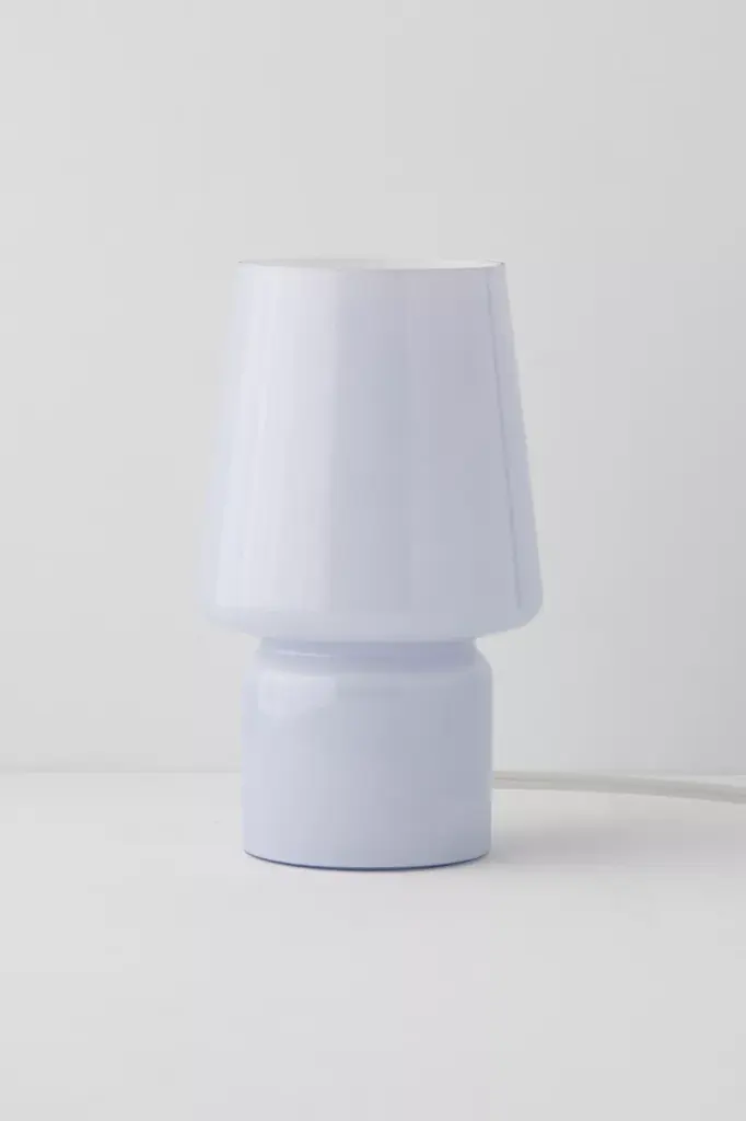 Perfect for your nightstand or bookshelf display, this little table lamp features a shaped glass vessel with a standing construction and open top. Frosty glass shade emits a warm glow. Available exclusively at Urban Outfitters.