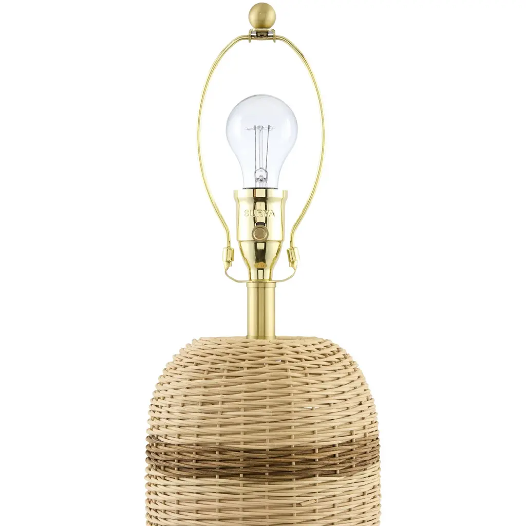 Introducing the Caylus accent table lamp, a perfect blend of traditional elegance and natural charm. Standing at 28 inches tall, this exquisite piece features a rattan body that exudes warmth and timeless appeal. The linen shade on the outside complements the sophisticated look, while the polyester inside ensures a soft, diffused glow that's perfect for creating a cozy atmosphere in any room. Finished off with an iron finial, this lamp is not only stylish but also incredibly functional. Keep it looking pristine by simply wiping clean with a dry cloth and avoiding harsh cleaners to preserve its beautiful finish. Illuminate your home with the Caylus lamp and let its classic design bring a touch of refined beauty to your space.