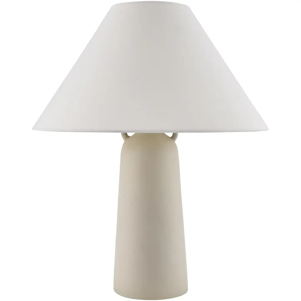 Illuminate your living space with the captivating charm of the Deva accent table lamp. Standing 22 inches tall, this Arts & Crafts Traditional piece is a perfect blend of artistry and functionality. The body of the lamp, crafted from concrete and adorned with hand-painted details, adds a touch of unique elegance to any room. Topped with a sleek iron finial and complemented by a soft cotton shade, it creates an inviting ambiance that is both warm and sophisticated. Easy to maintain, just wipe clean with a dry cloth to keep it looking pristine. Add this striking piece to your decor for an instant upgrade that exudes timeless style!